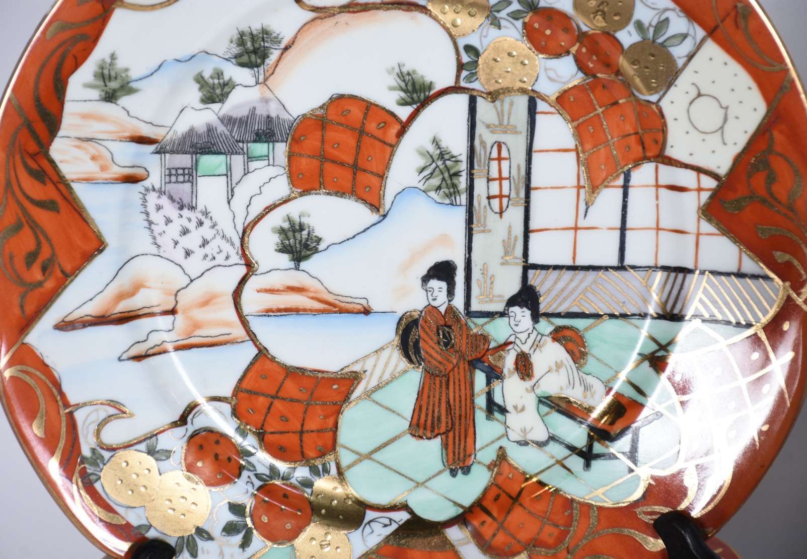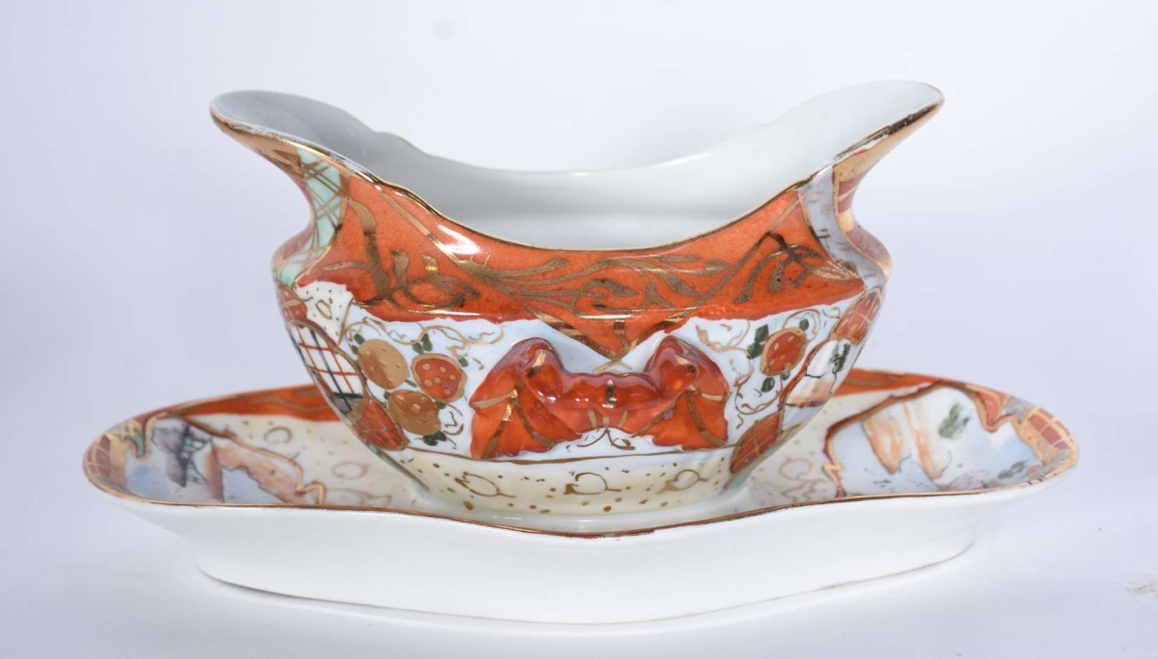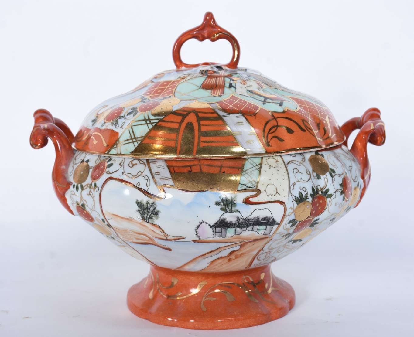 Veilleuse de porcelana francesa decorada com flores em policromia sobre fundo verde água e realces dourados, com duas...