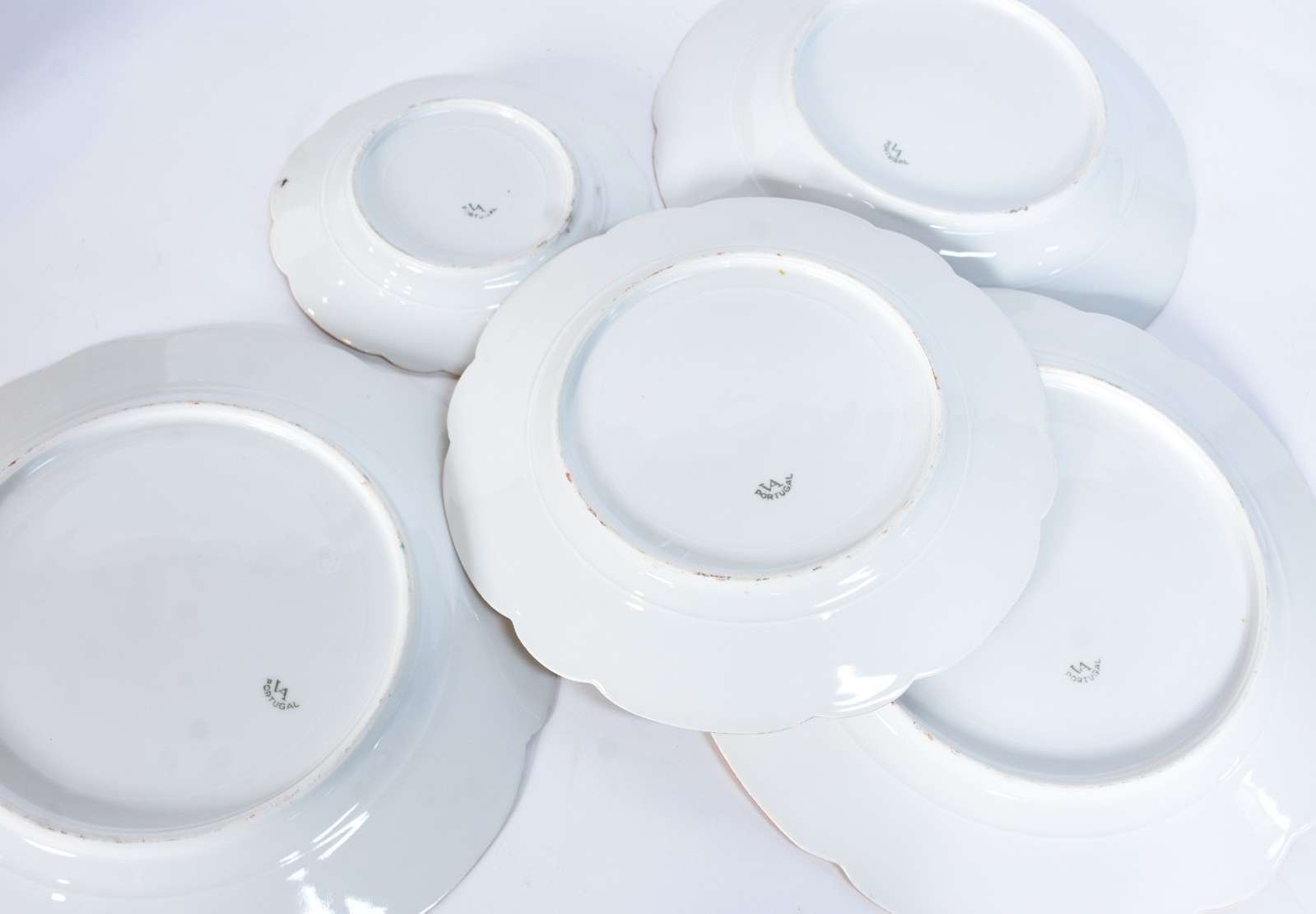 Seis souplats de prata portuguesa contraste Águia, 1º título, bordas recortadas com frisos em relevo. Peso da prata: ...