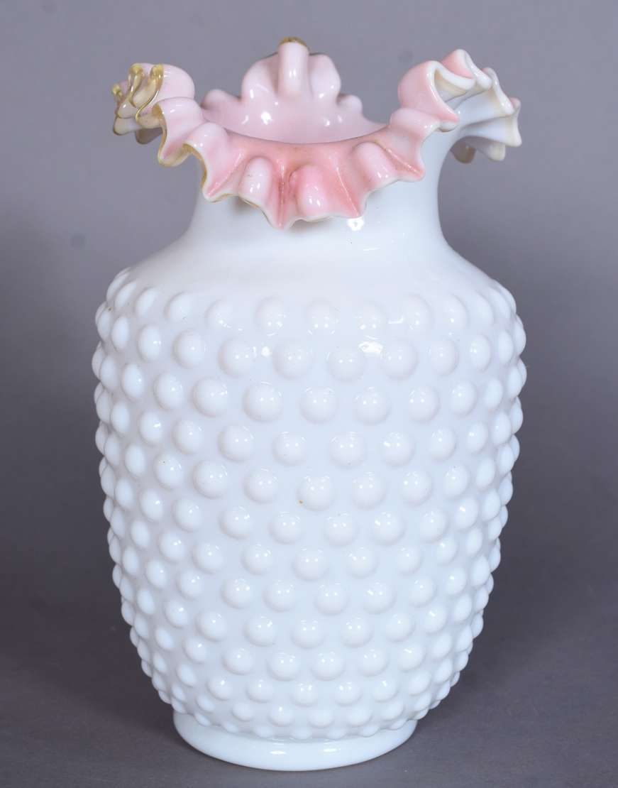 Vaso de porcelana inglesa, Art Nouveau, com flores e perolados em policromia. Marca na base.
