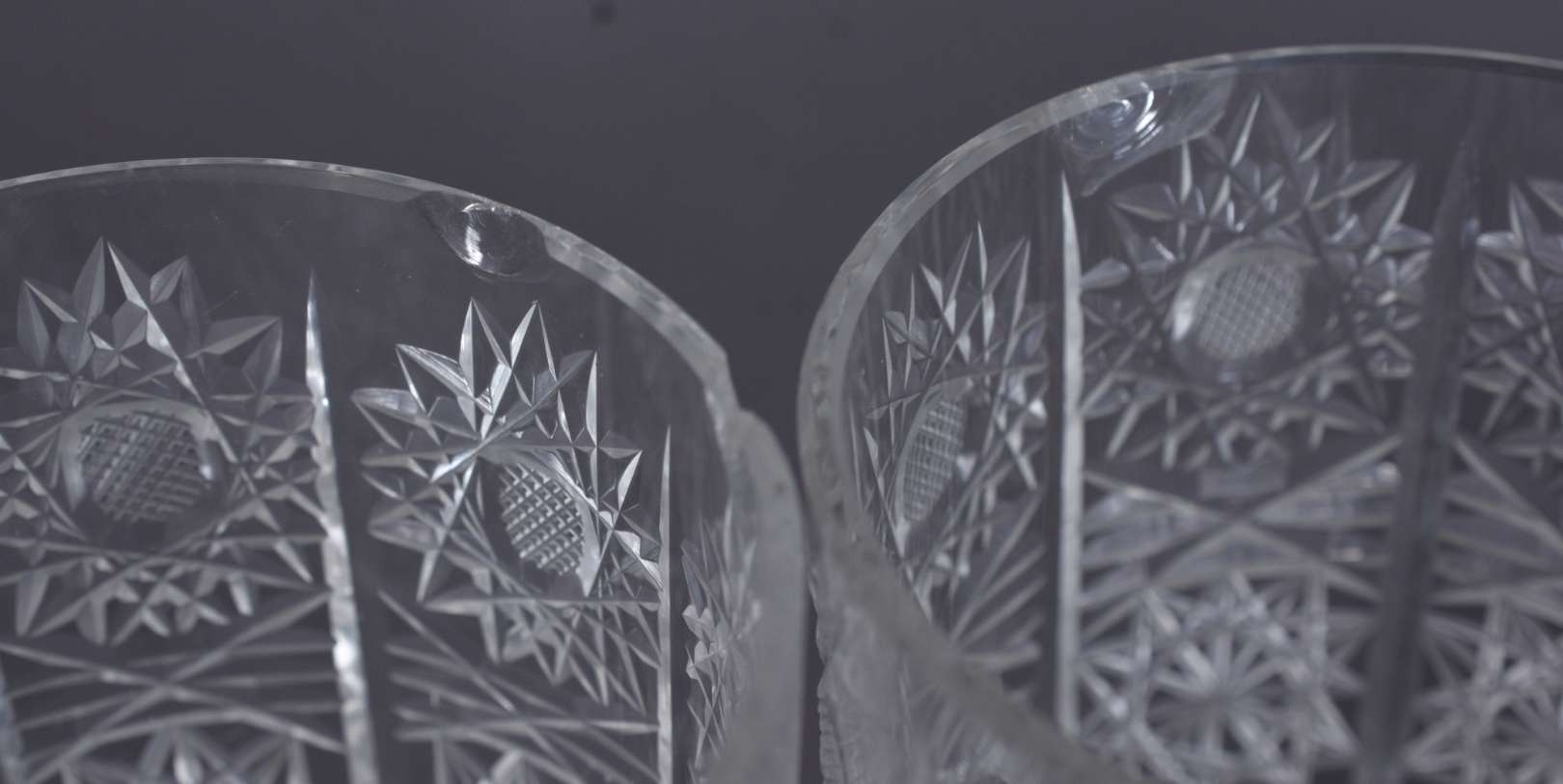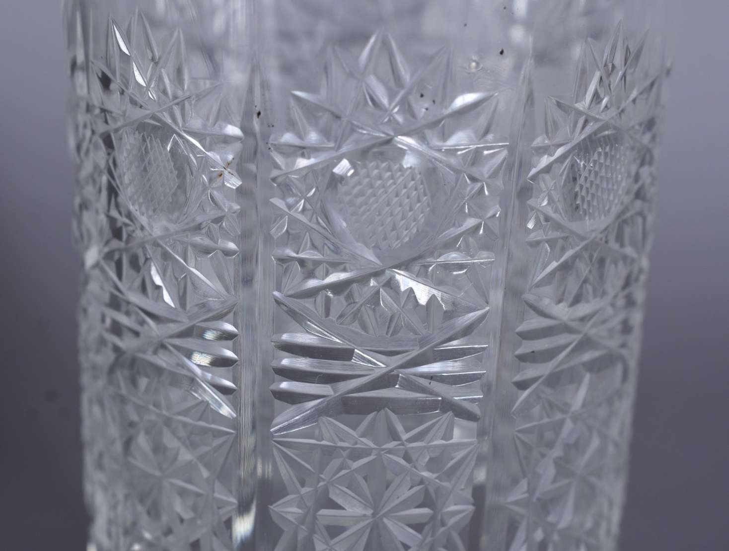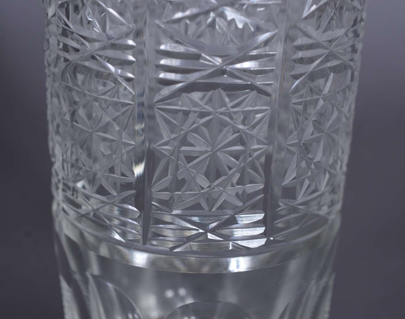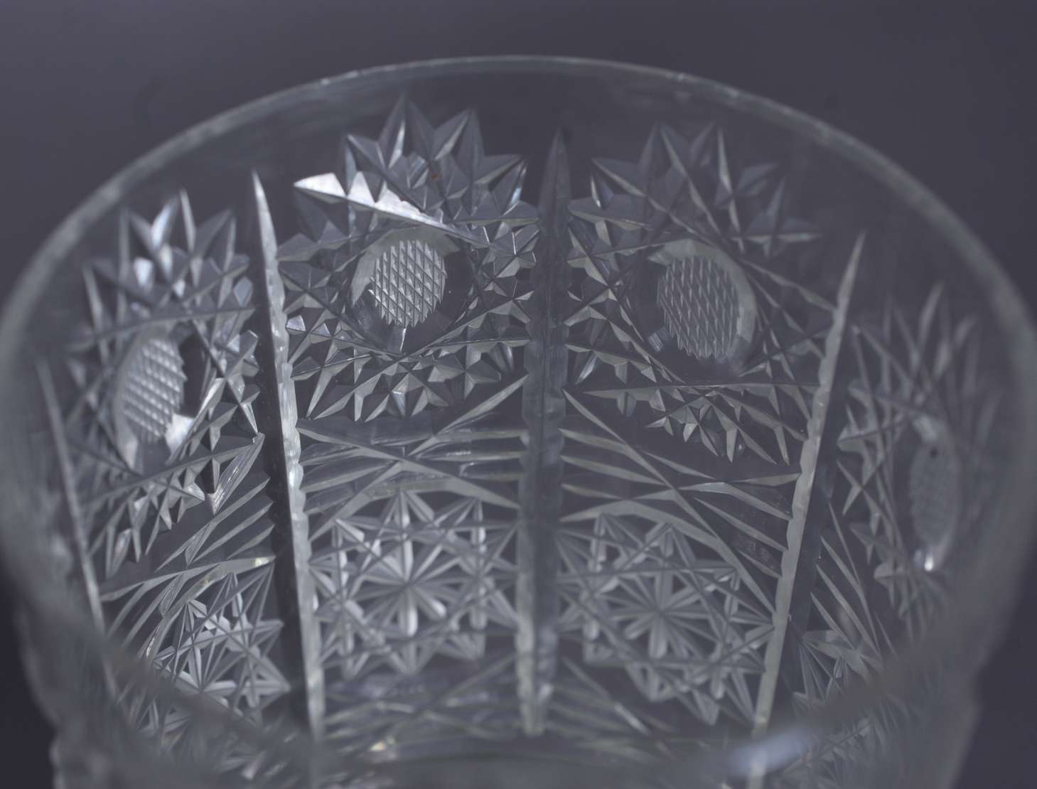 Dez copos longos de cristal lapidado bases facetadas.