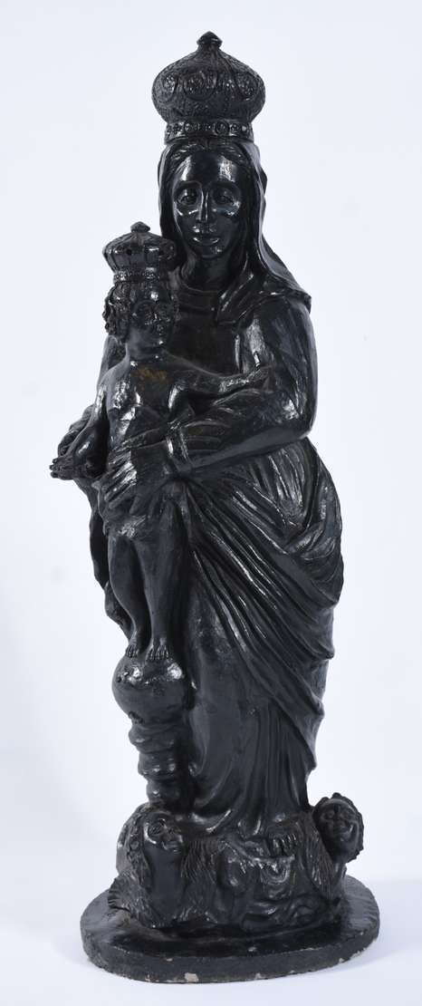Nossa Senhora da Imaculada Conceição - Imagem de madeira policromada, com serpente e lua aos seus pés.