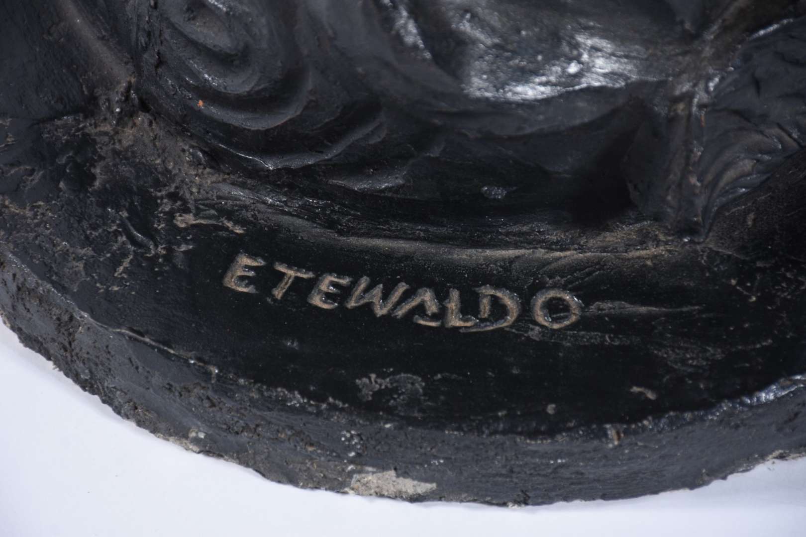 Duas esculturas, sendo um busto de alabastro e cinzeiro com figura de bronze representando músico.