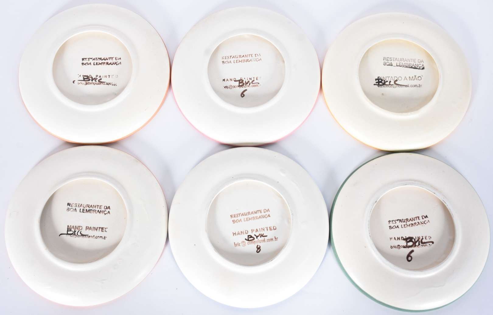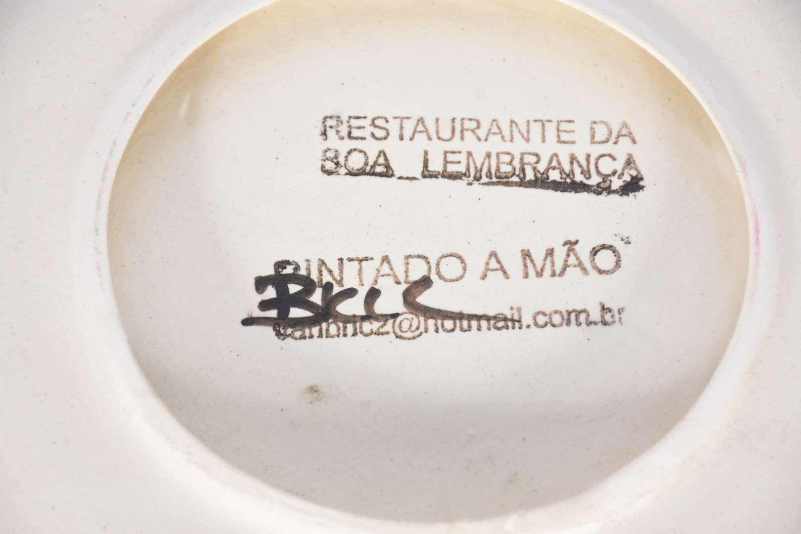 Seis pratos de cerâmica de "Restaurante da Boa Lembrança".