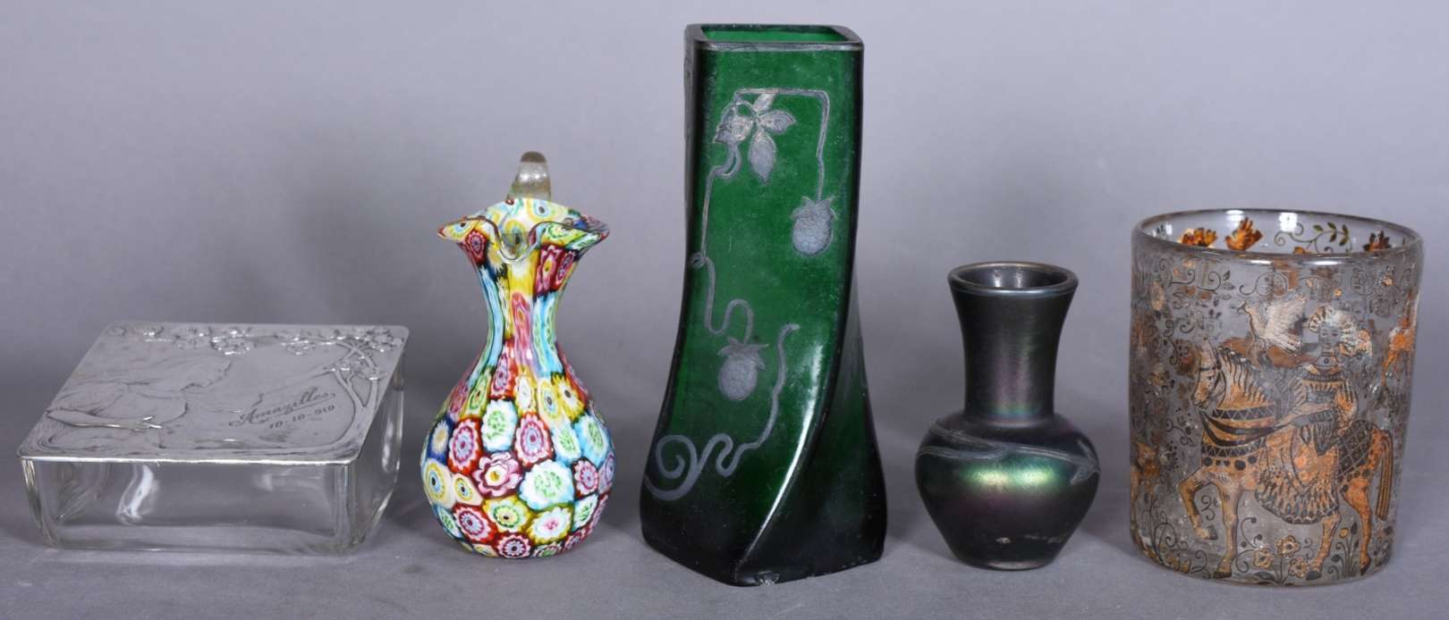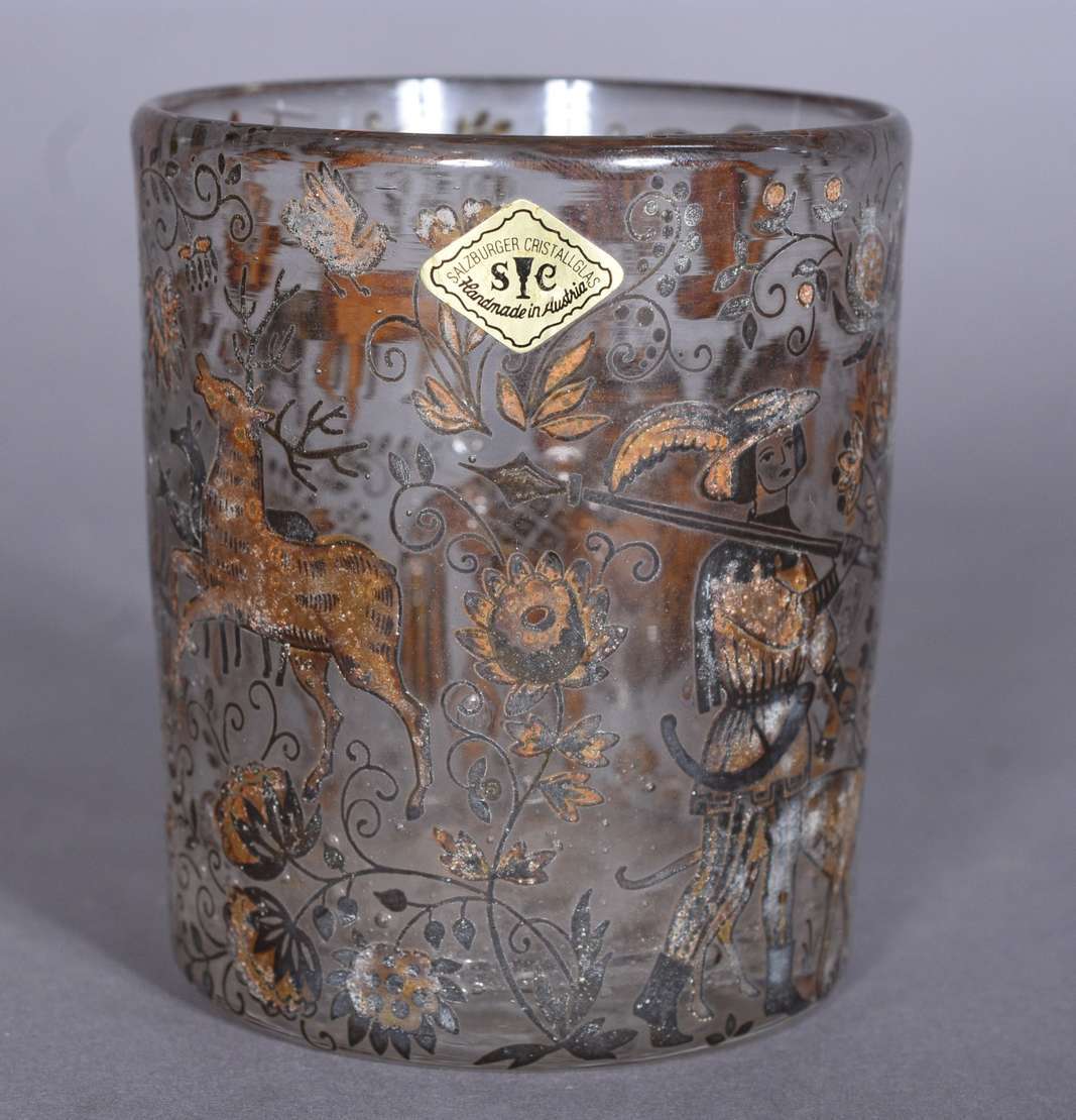 Balde com alças e coluna de metal Art Deco.