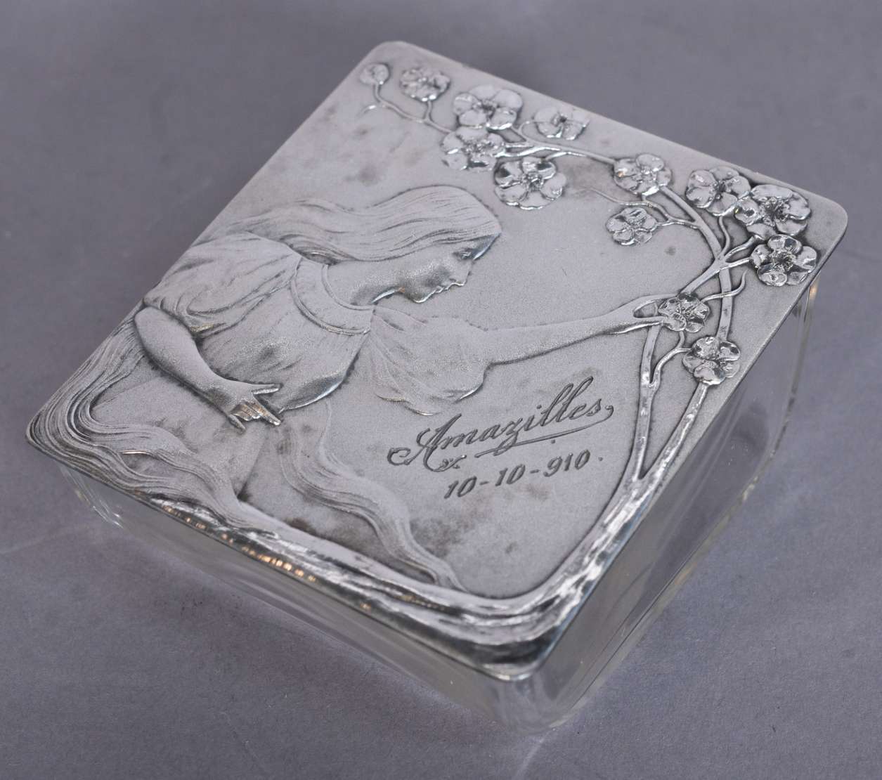 Caixa redonda de prata 800 mls. Peso da prata: 440 g (Por motivos de segurança a peça não se encontra na loja)