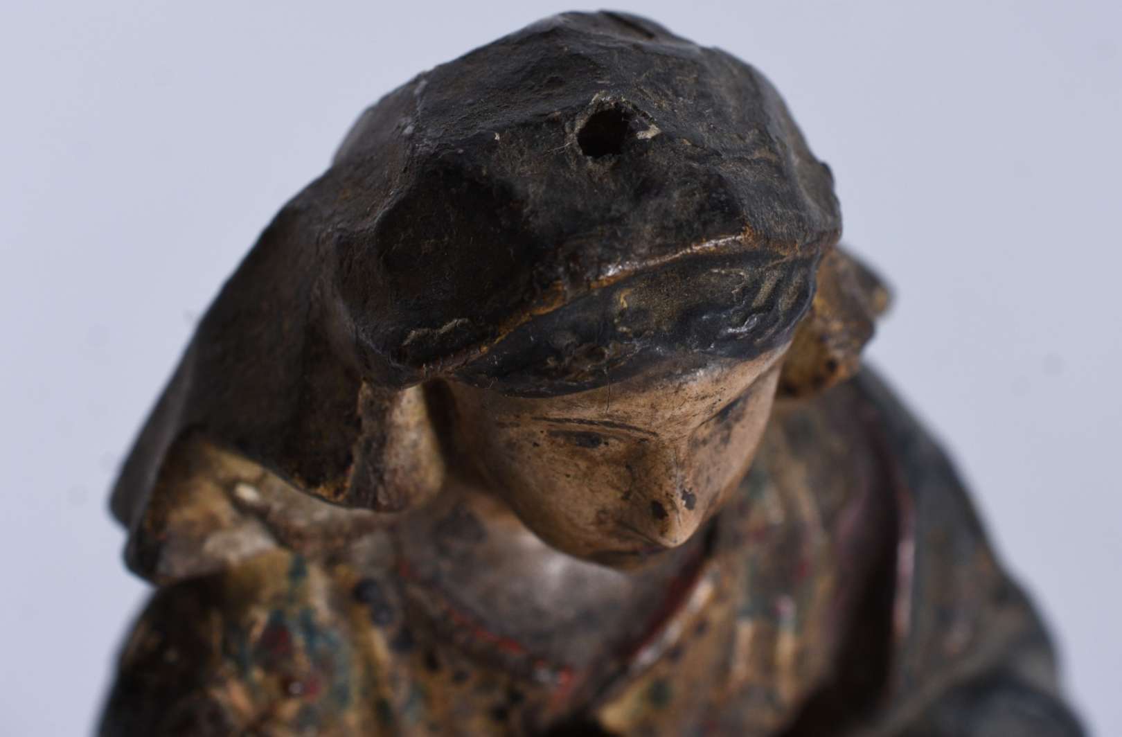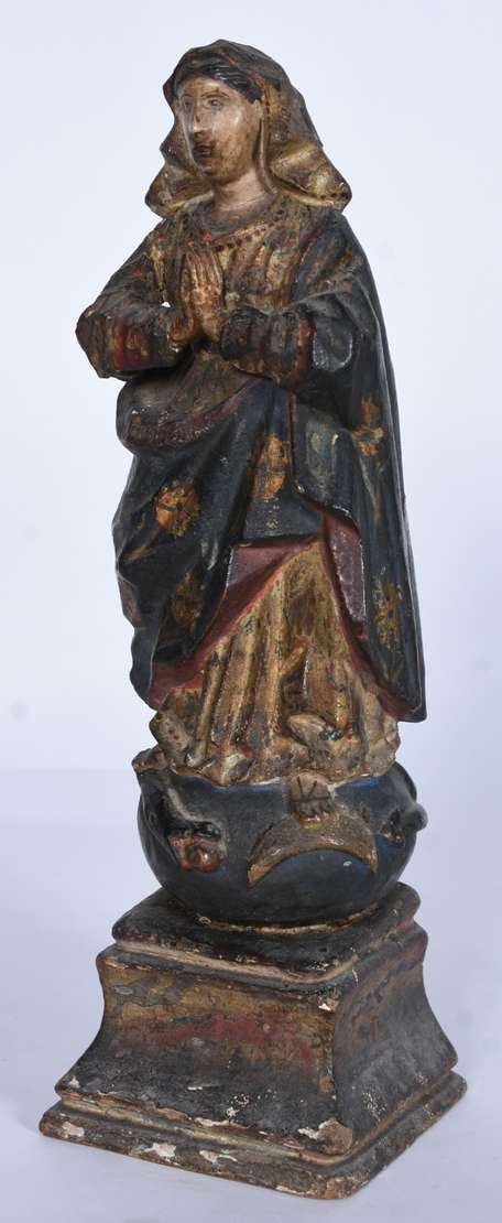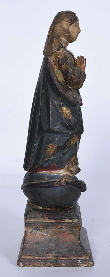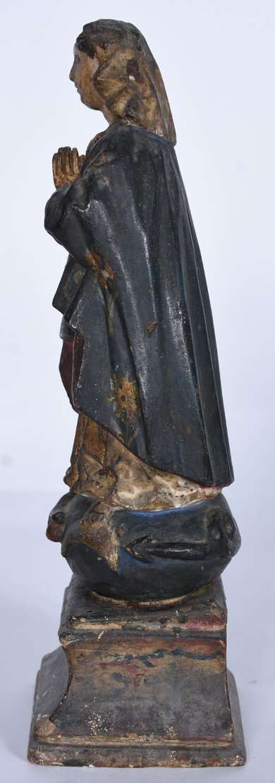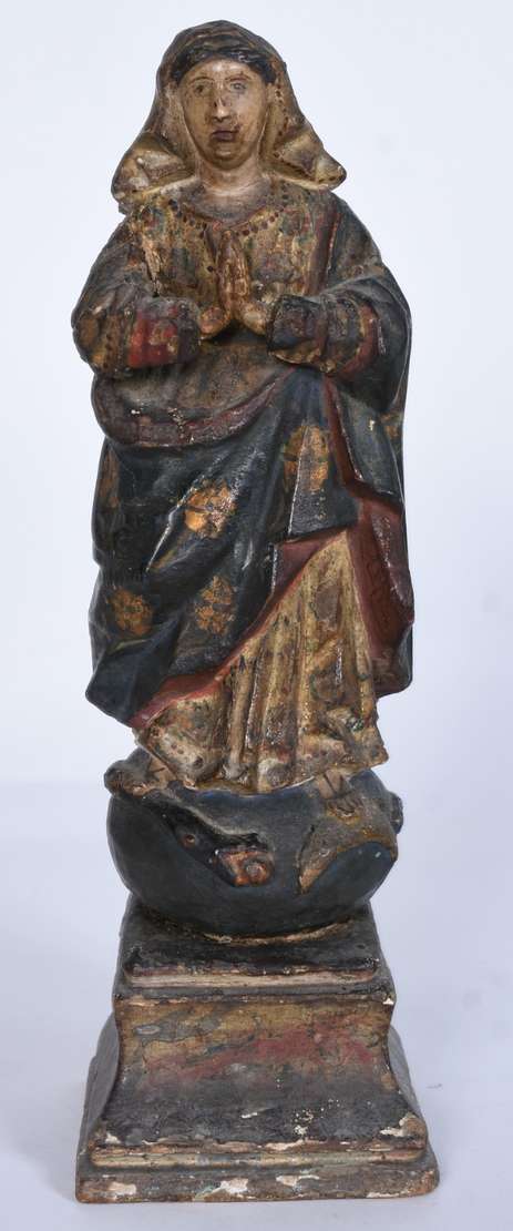 Imagem de madeira policromada com resplendor de prata (sem os dedos de uma das mãos).