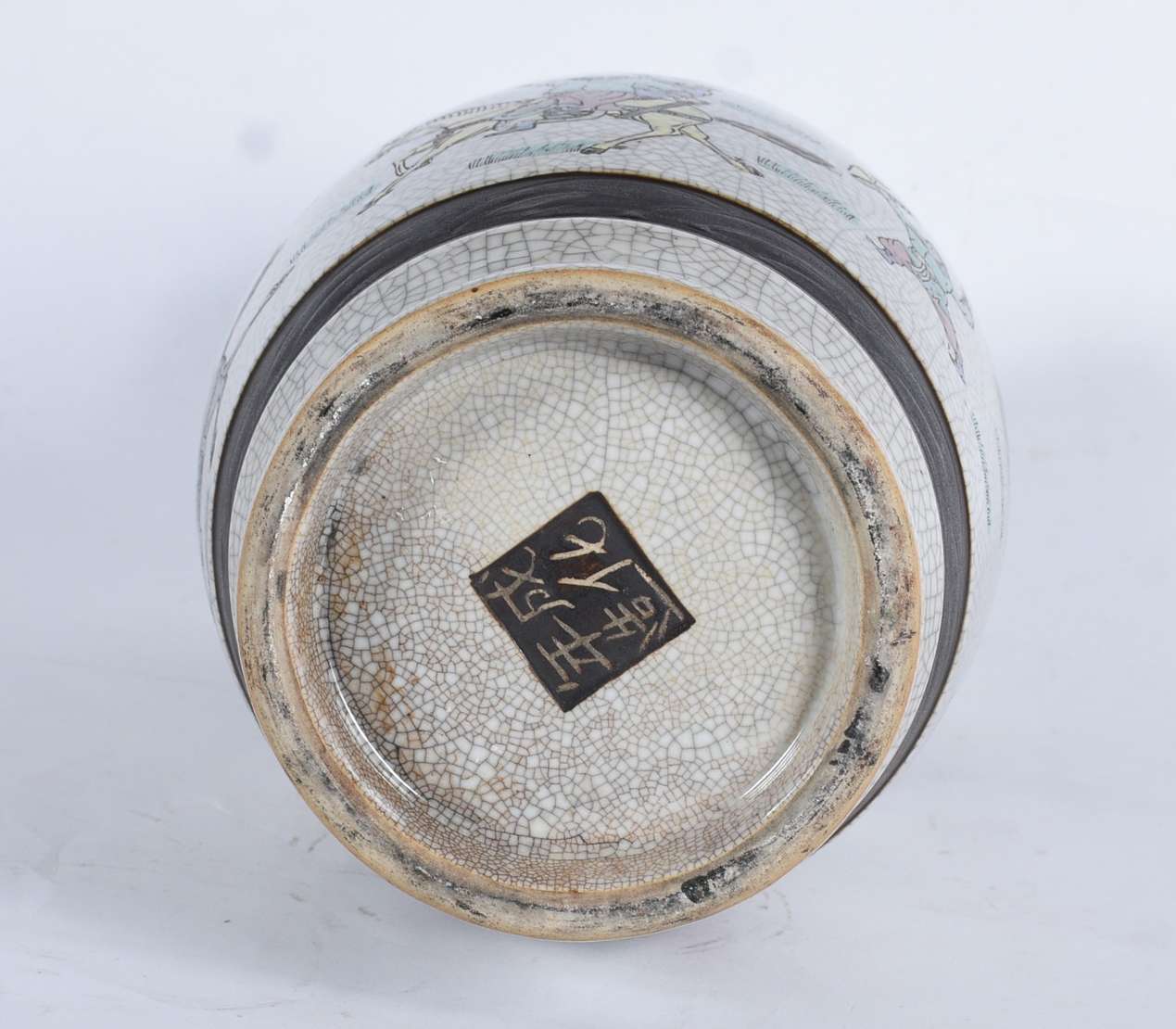 Par de potiches de porcelana oriental, formato quadrangular, decorados com figuras de gueixas e flores em policromia.