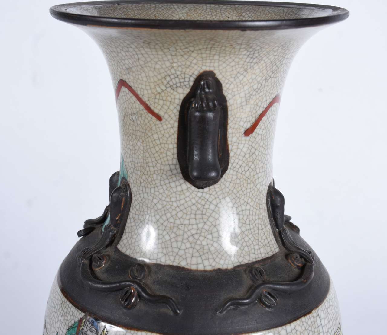 Par de vasos franceses em bronze e aplicações em esmalte.