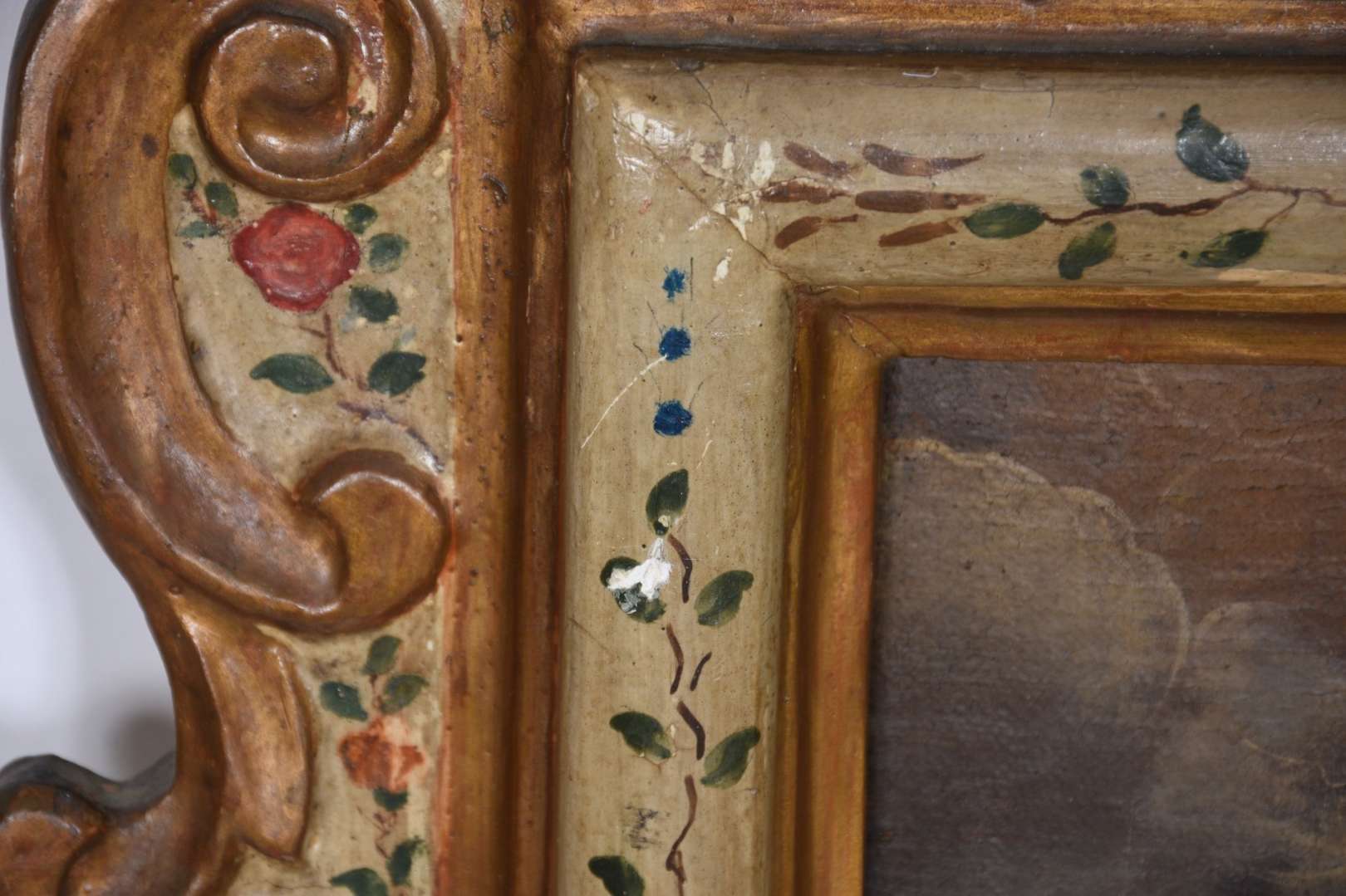 Óleo sobre tela. Pequeno arranhado e 3 pequenos furos. Ricamente emoldurado.