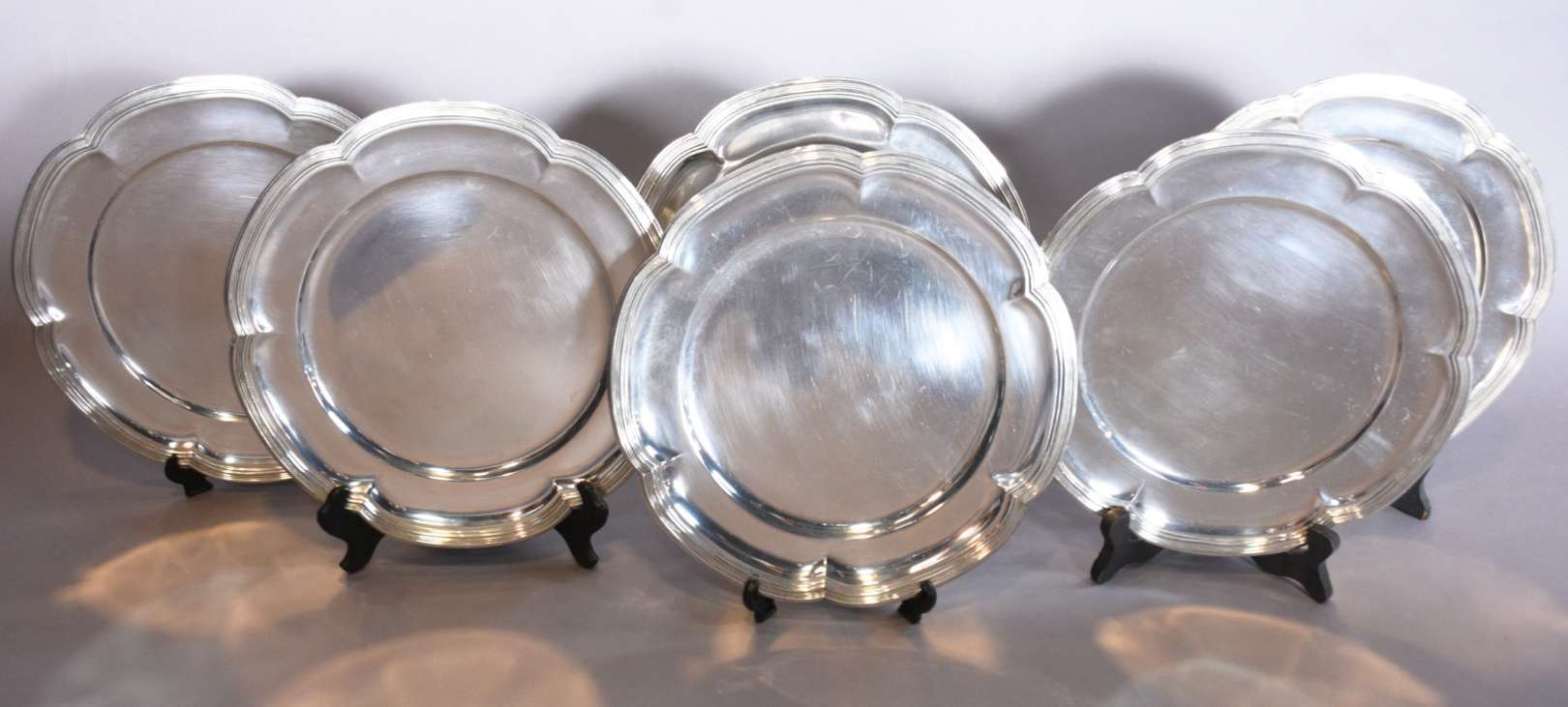 Dez lavandas de prata portuguesa contraste Águia, 1º título, bordas recortadas com frisos em relevo. Interior em verm...
