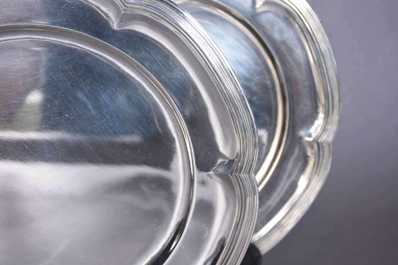 Salva Dona Maria de prata contrastada, frisos guilhochados e pés de garra. Peso da prata: 500 g (Por motivos de segur...