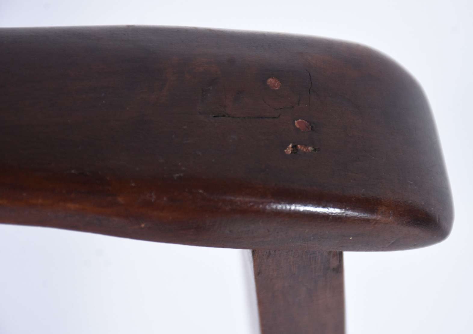 Cadeira de madeira nobre estilo Império, assento de palhinha e encosto com pinos torneados.