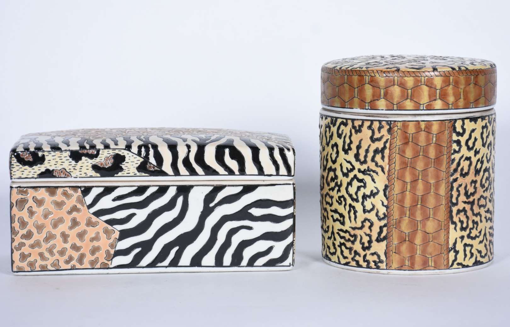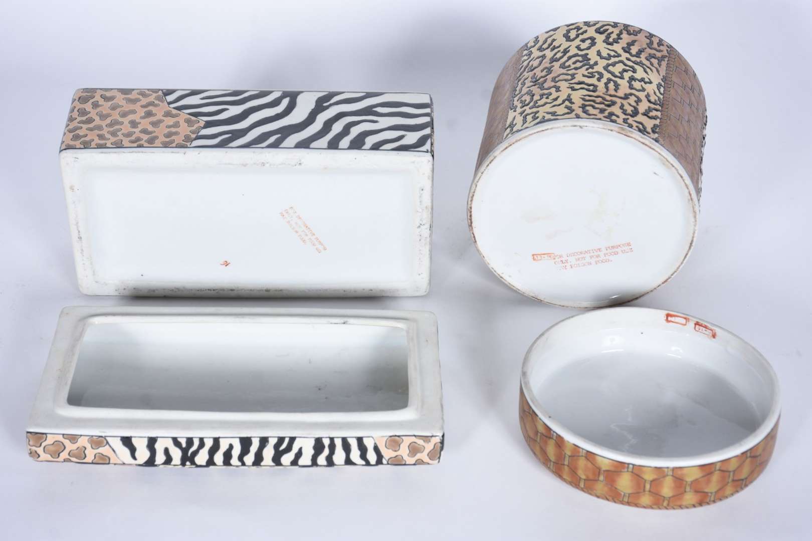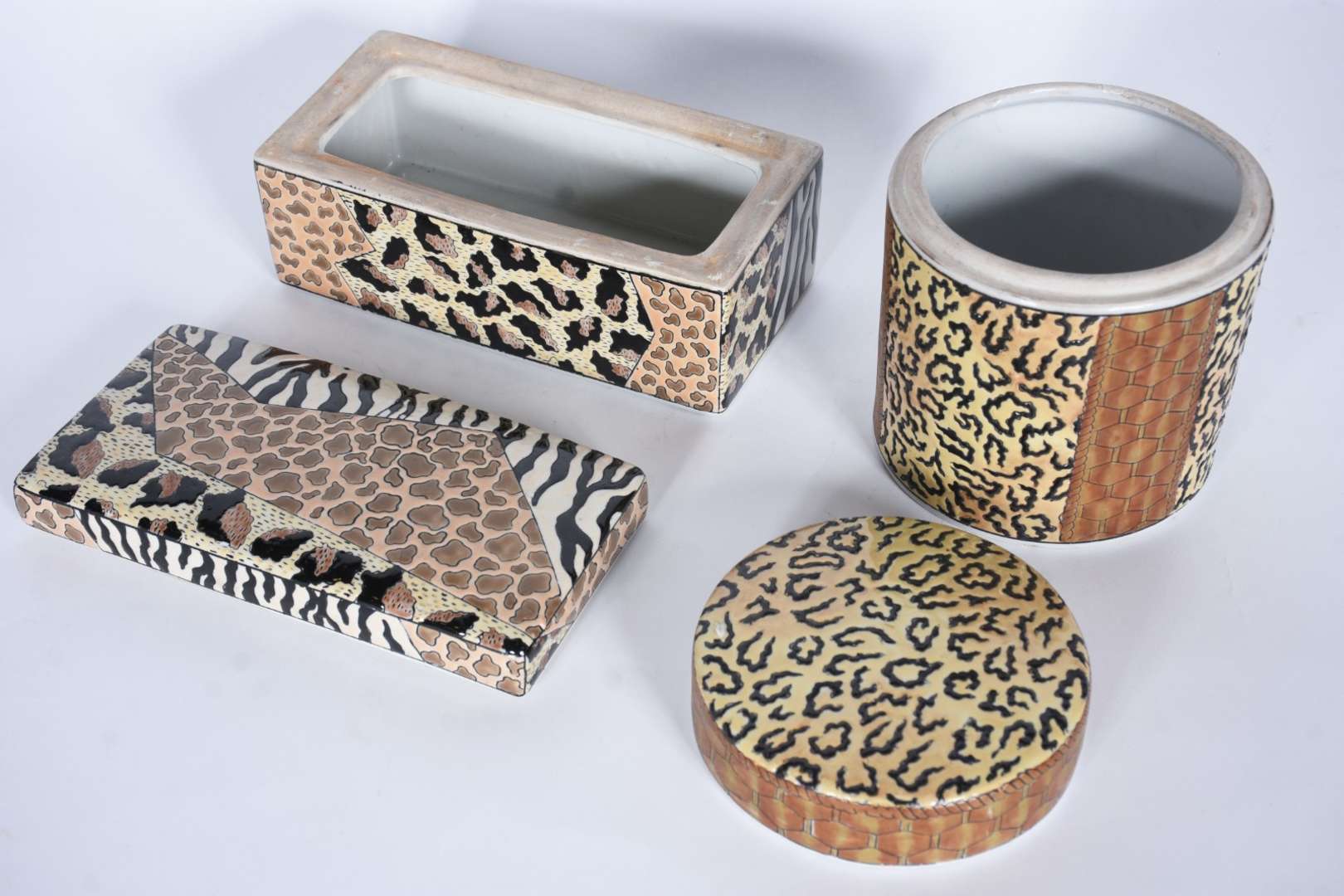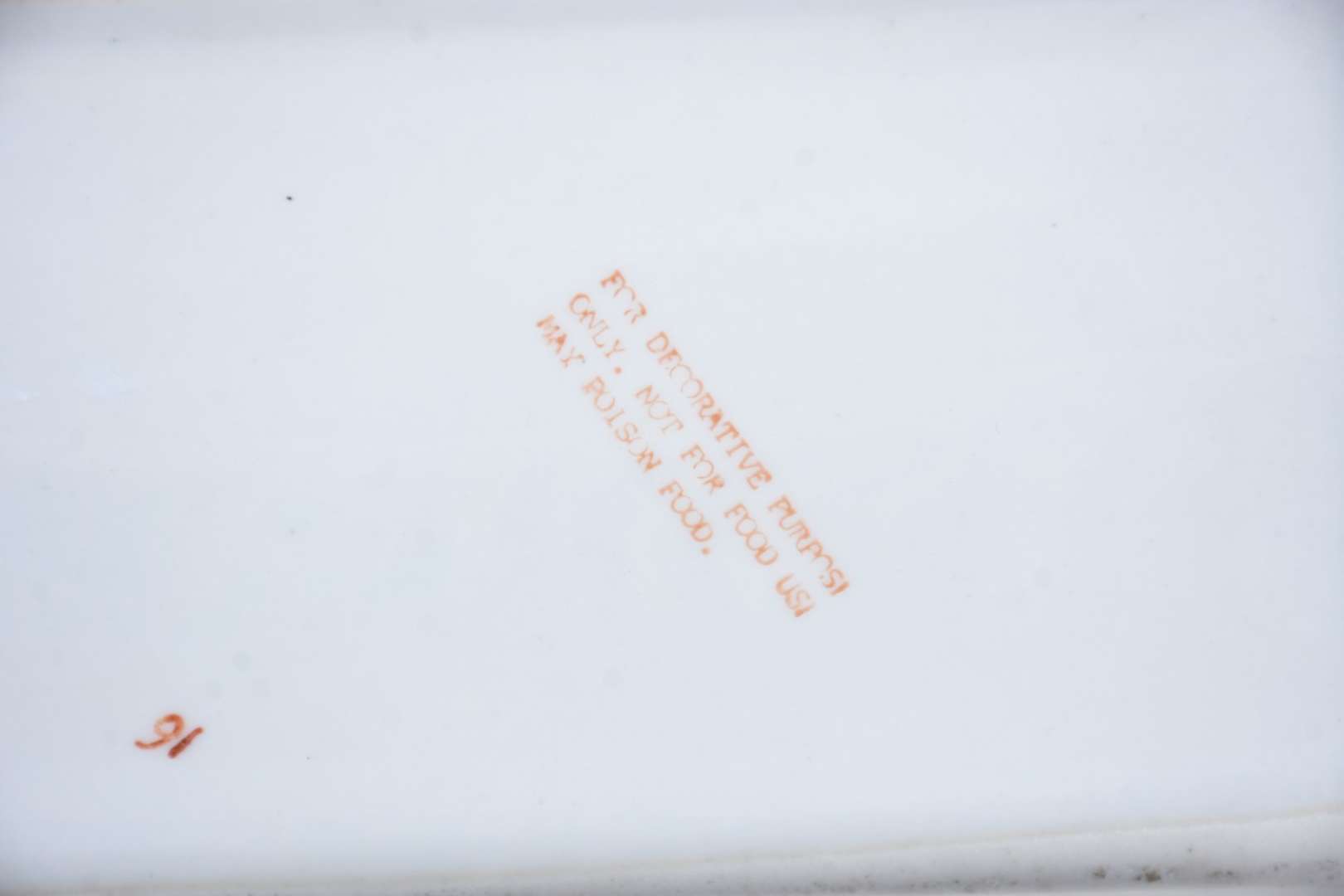 Saboneteira ART DECO de porcelana policromada na forma de figura feminina e cachorro sobre recamier.