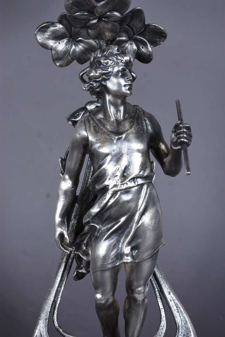 Baixela de chá e café de prata contraste 800 mls., ricamente decorada com figuras de anjos em relevo e guirlandas flo...