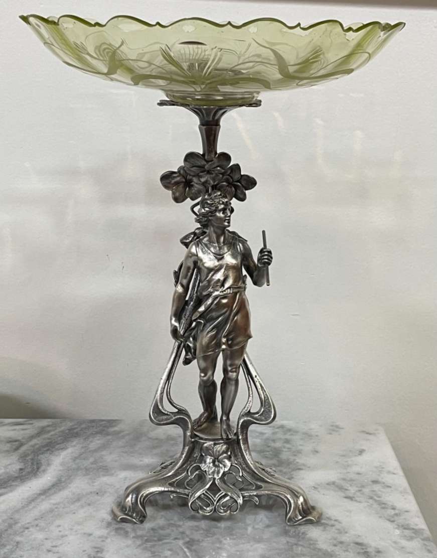 Salva Dona Maria de prata contrastada, frisos guilhochados e pés de garra. Peso da prata: 500 g (Por motivos de segur...