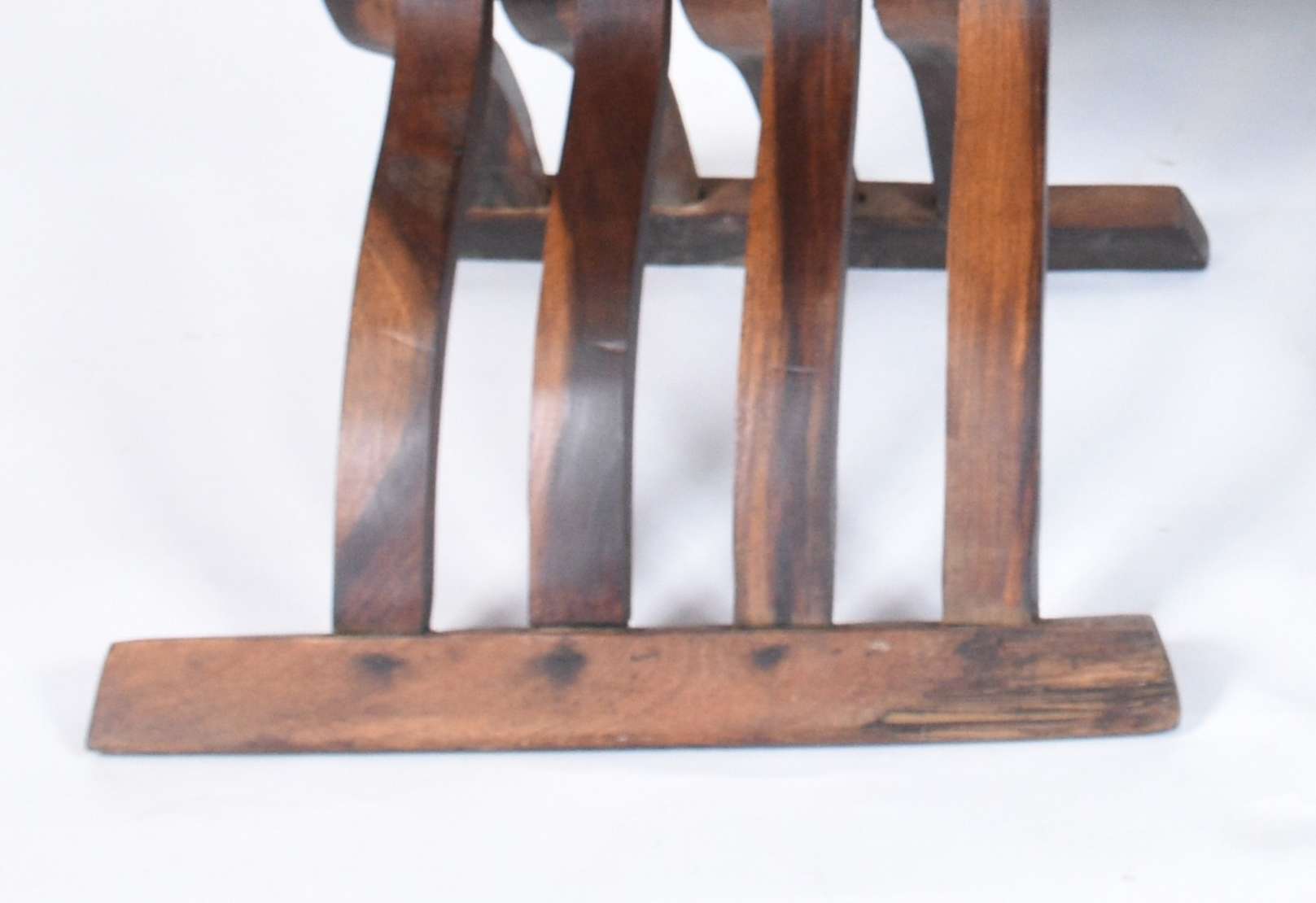 Mesa ninho de madeira nobre feitio retangular, com 4 peças articuladas de encaixar, tampos oitavados, pernas torneadas.