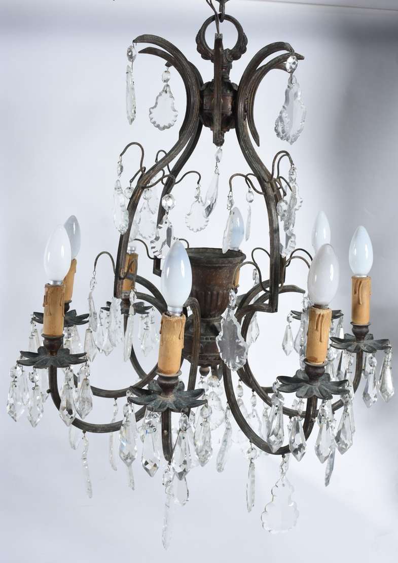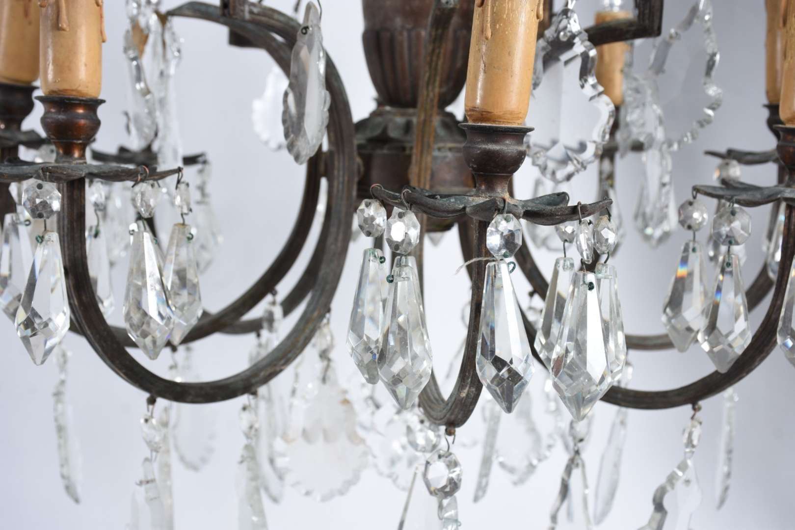 Belíssimo lustre de cristal para 12 luzes, placas lapidadas. (um braço solto, e fiação precisando trocar).