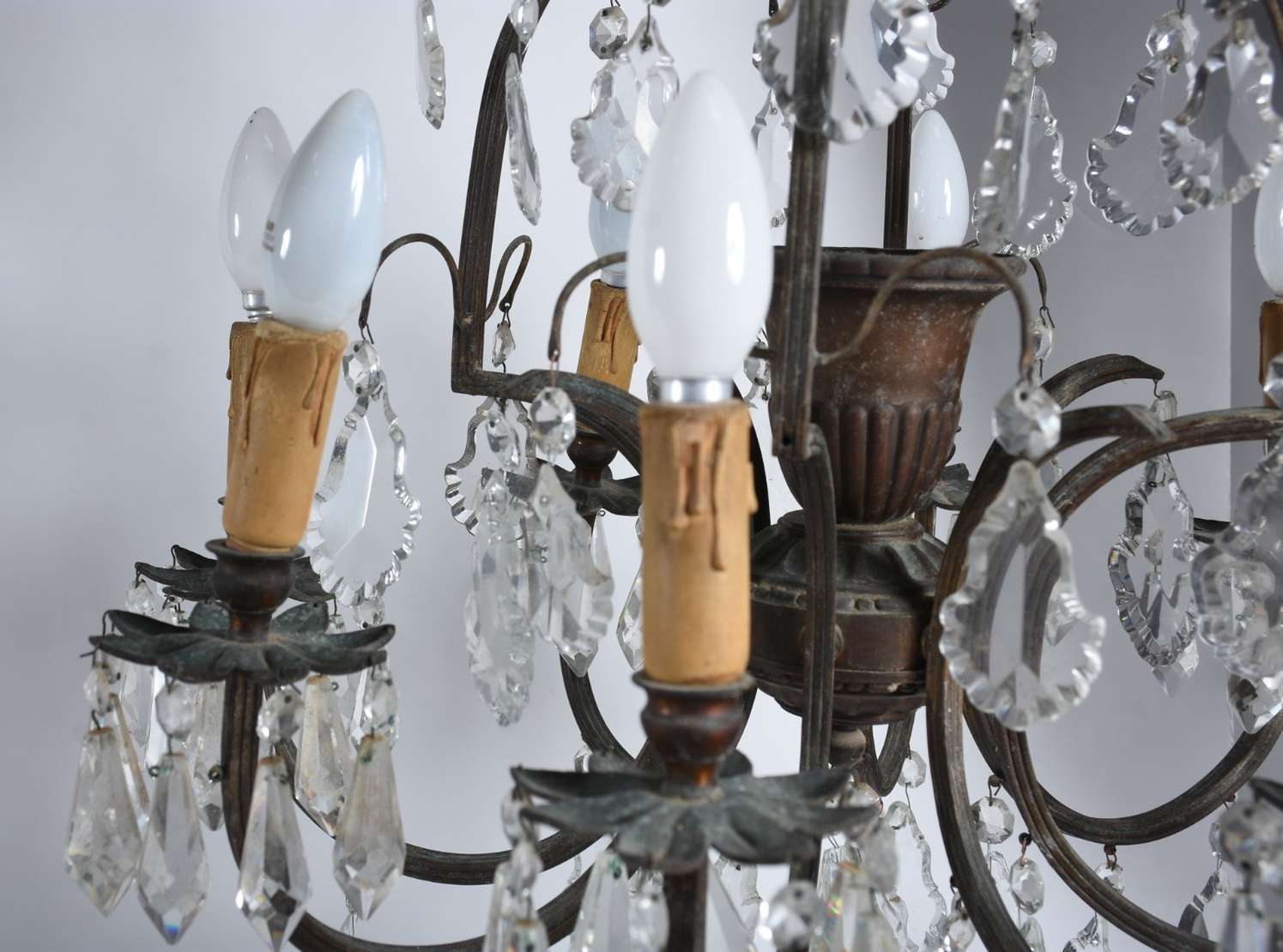 Lustre de metal e cristal para 7 luzes, pingentes lapidados.