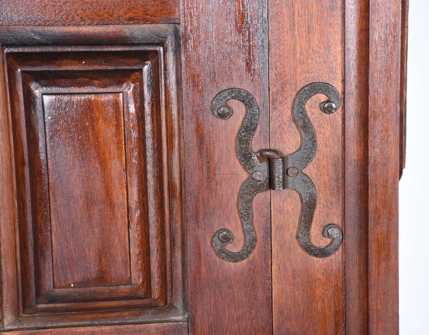 Antigo armário chines de madeira nobre patinada, duas portas centrais com prateleira interna. Retirada em apartamento...