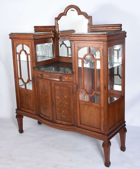 Móvel estante de madeira rústica, porta vazada decorada com figuras marinhas em policromia.