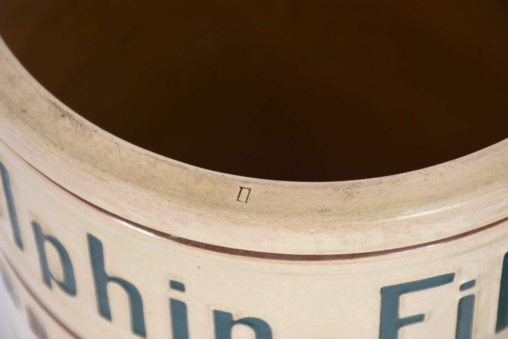 Par de telhas de cerâmica chinesa encimadas por figuras de peixes, século XVIII, uma quebrada e colada e pequenos las...