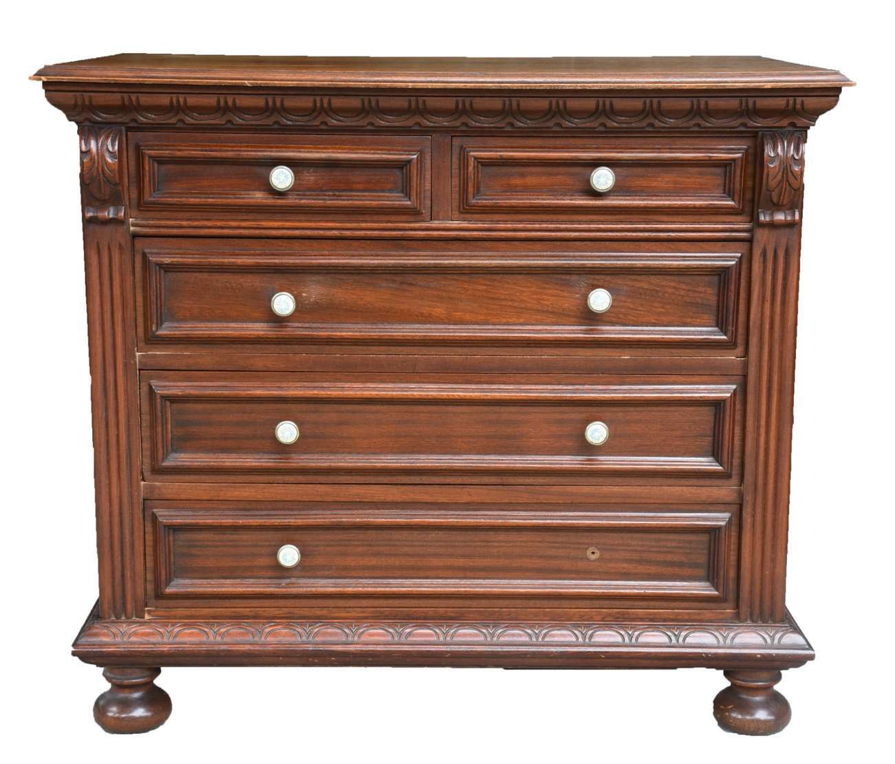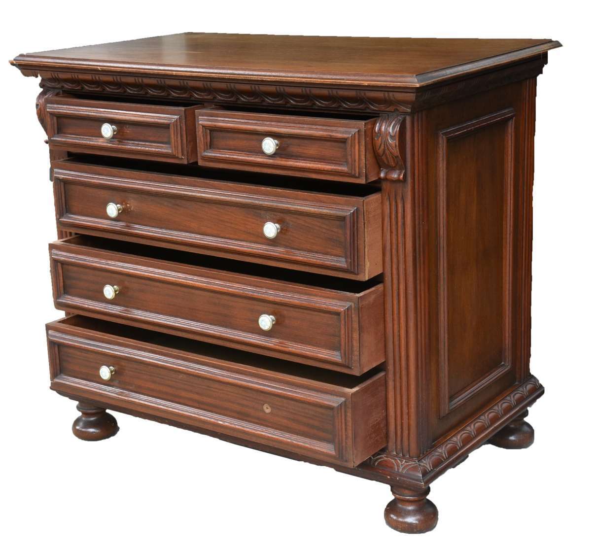 Aparador estilo Chipendale de madeira nobre, saia recortada com florão entalhado, pintado na cor vermelha.