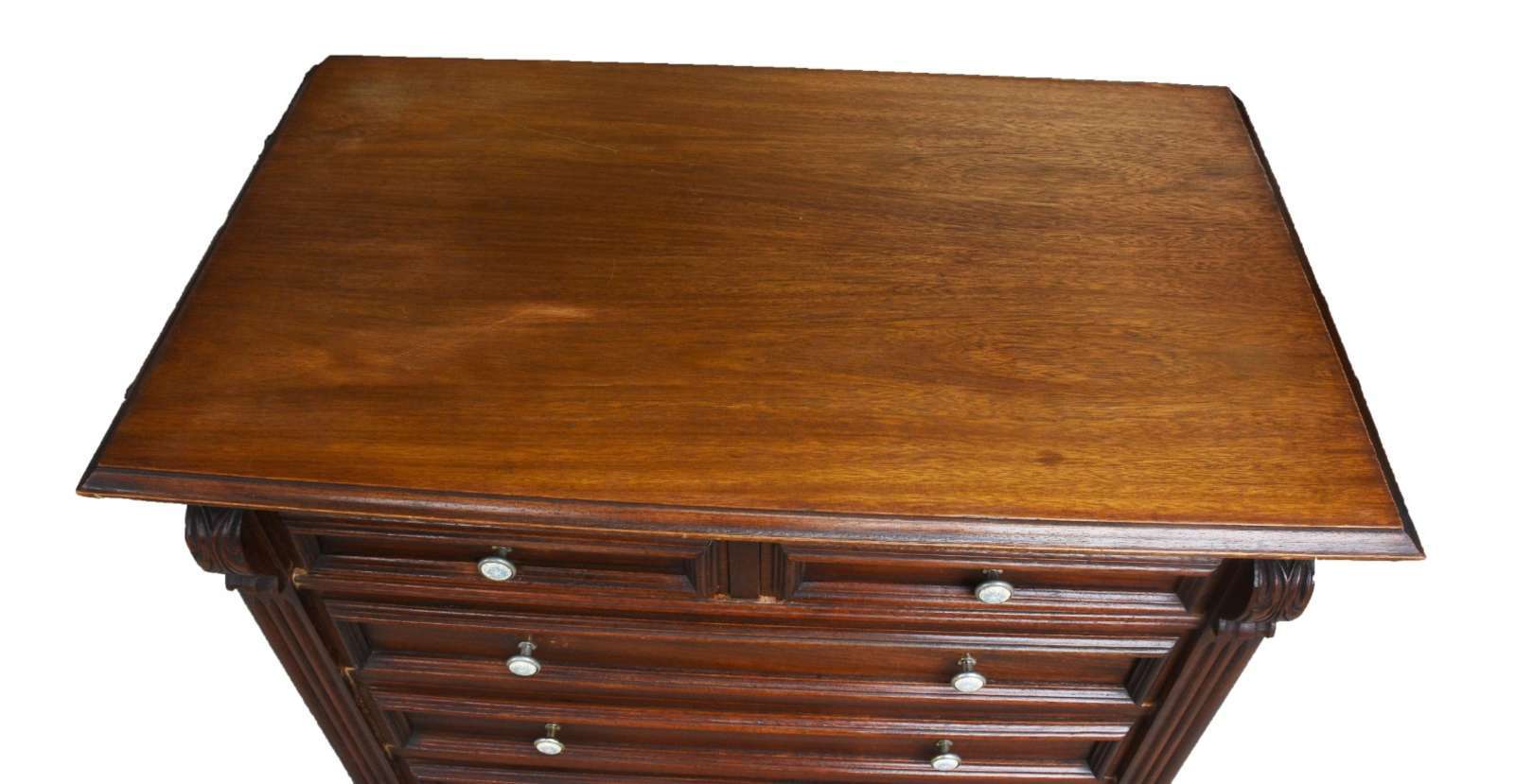 Cristaleira de madeira nobre com 2 portas laterais de vidro, parte central com tampo de mármore e espelho bisotado.