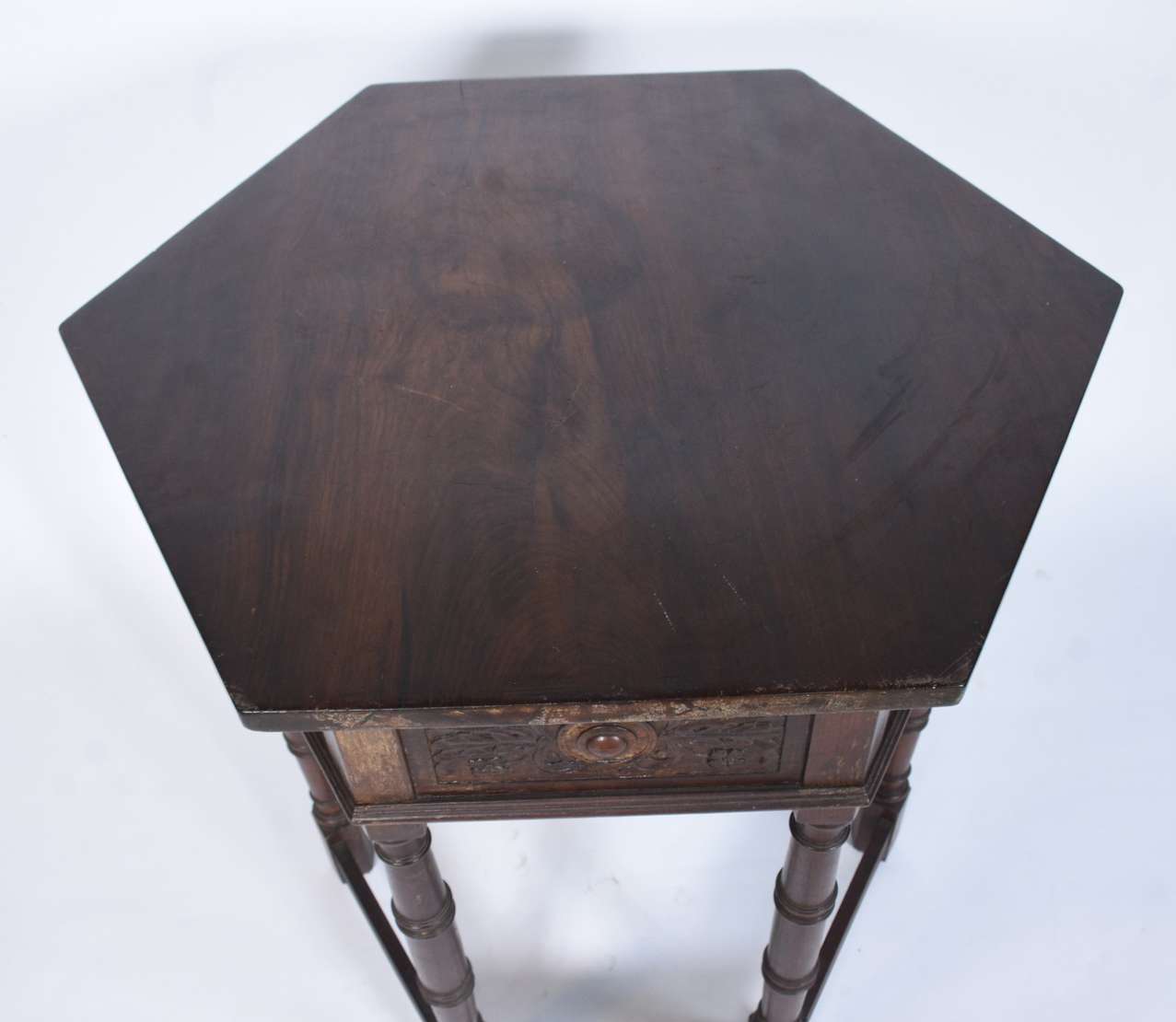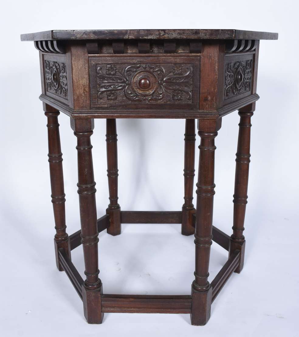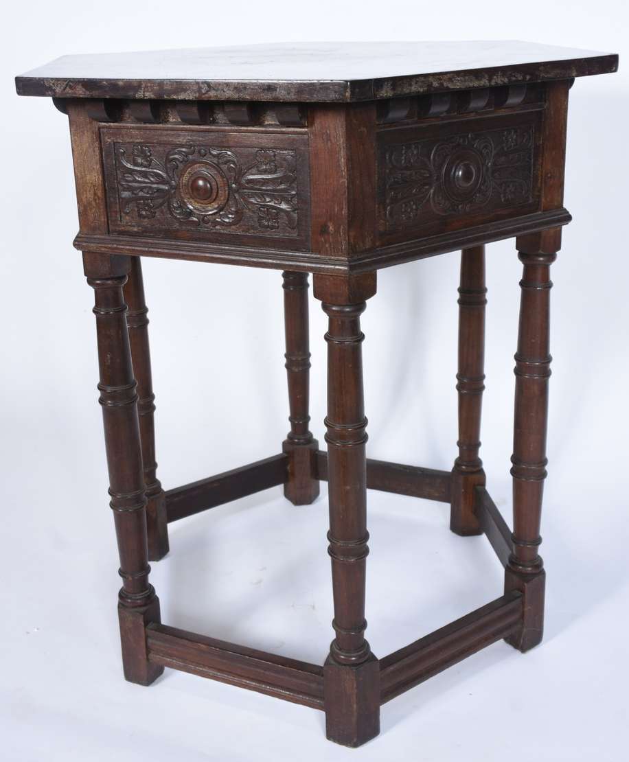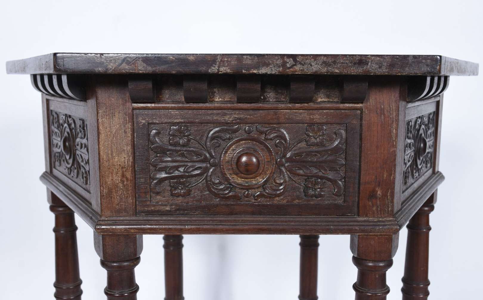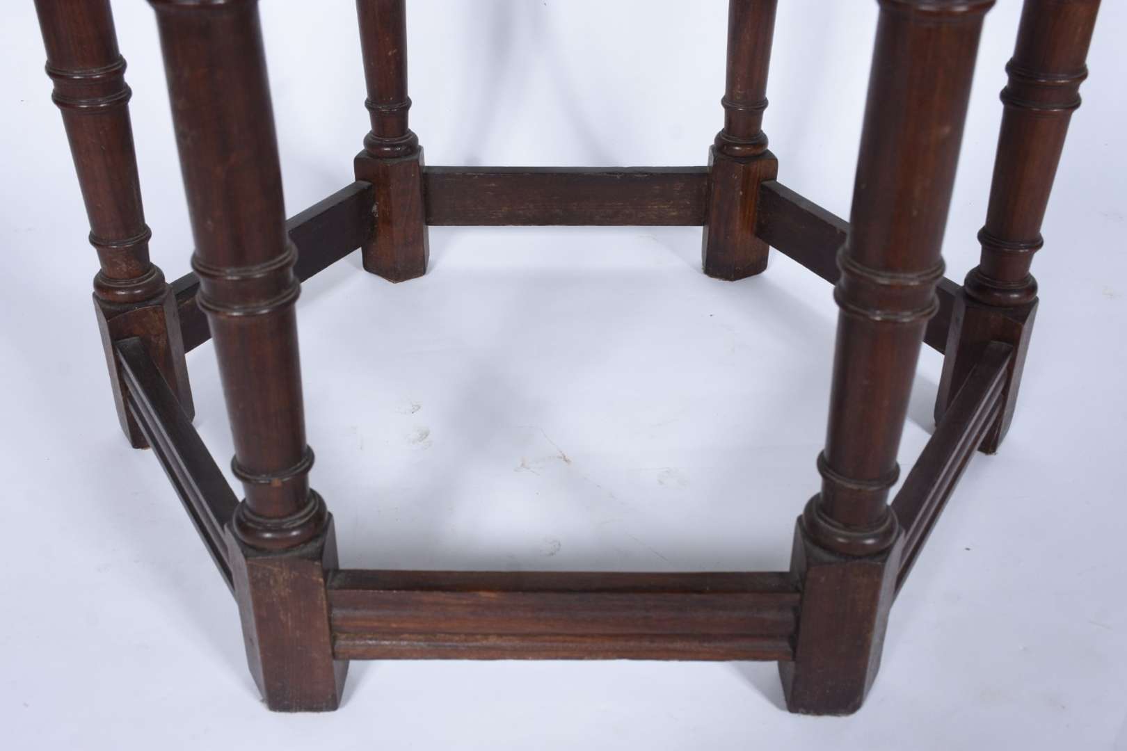 Mesa ninho de madeira nobre feitio retangular, com 4 peças articuladas de encaixar, tampos oitavados, pernas torneadas.