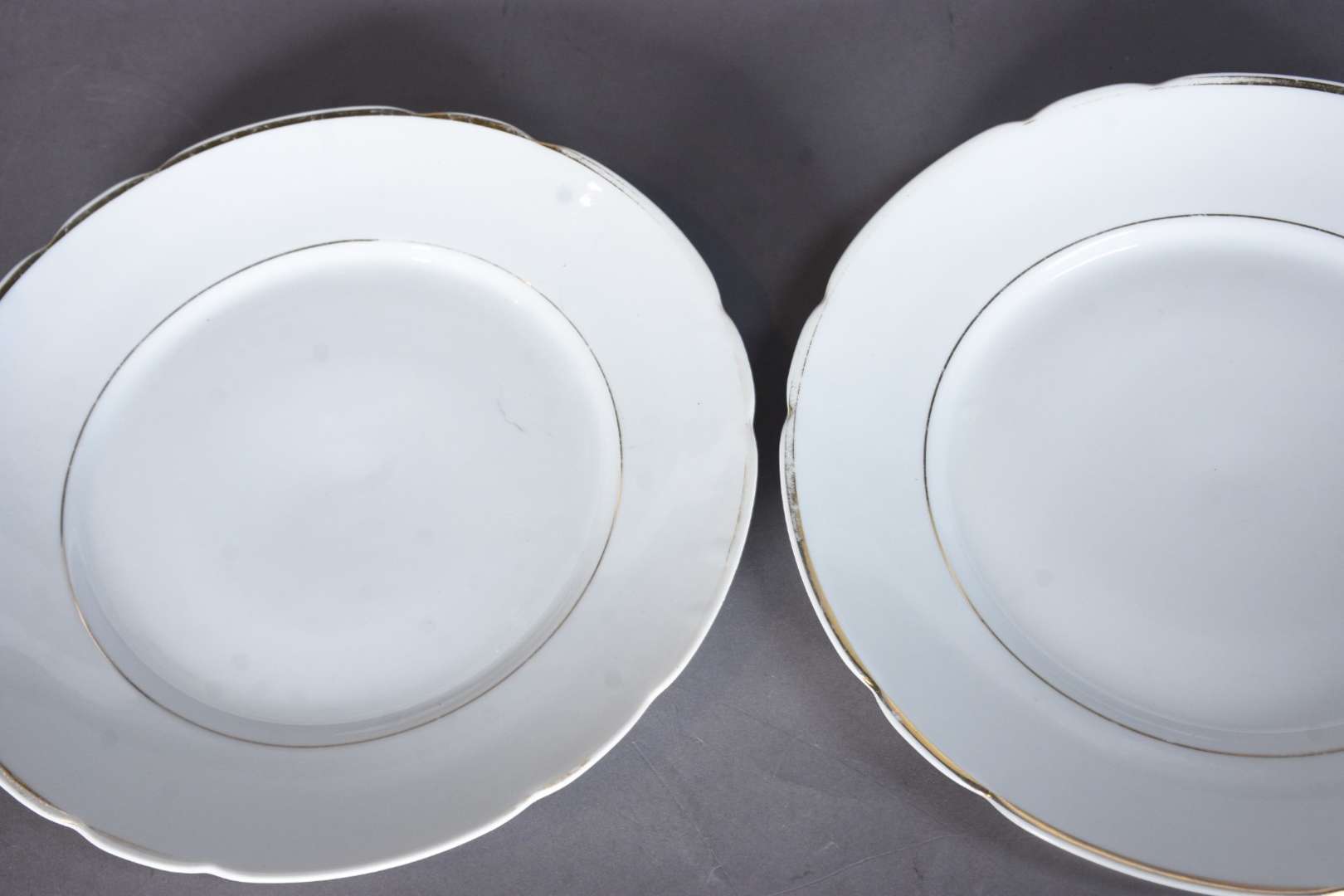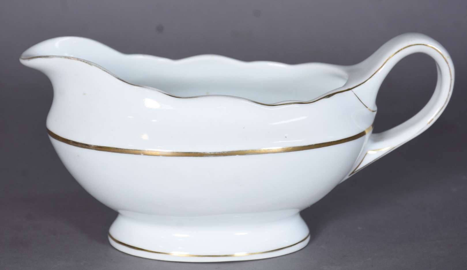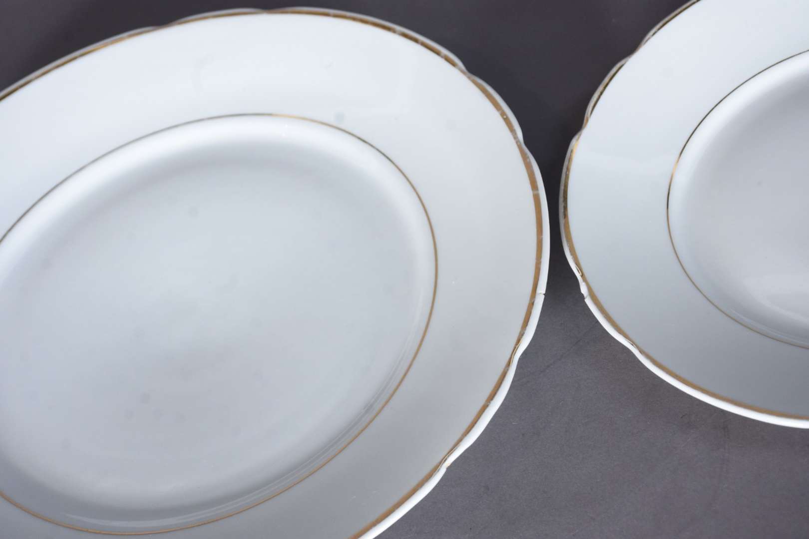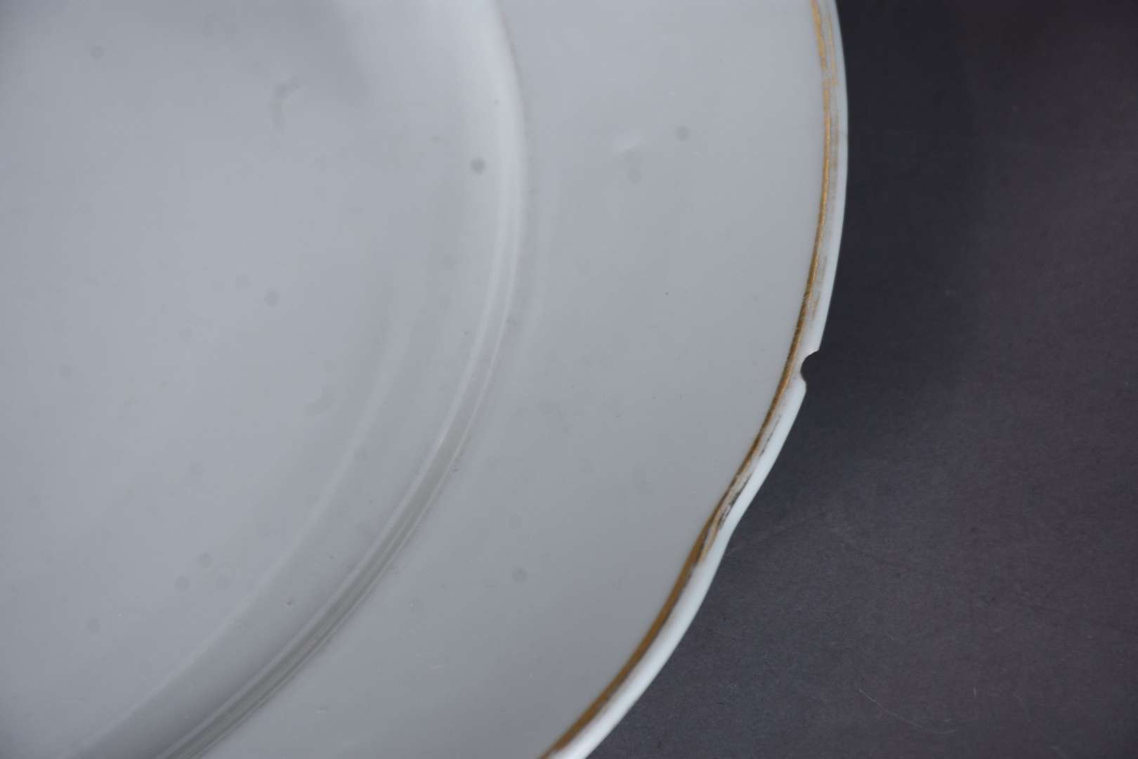Aparelho de jantar, chá e café de porcelana francesa na cor branca com guirlandas douradas, composto de: 24 pratos ra...