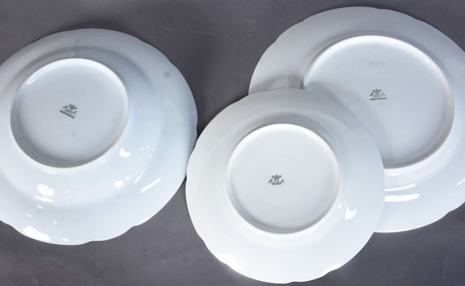 Serviço de porcelana branca Brennand decorado com ramos de flores em policromia, composto de: 14 pratos rasos (1 com ...