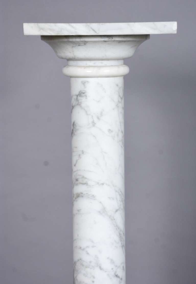 Par de grandes peanhas de madeira nobre patinada, entalhadas em rocaille. Selo da Casa Ayres.
