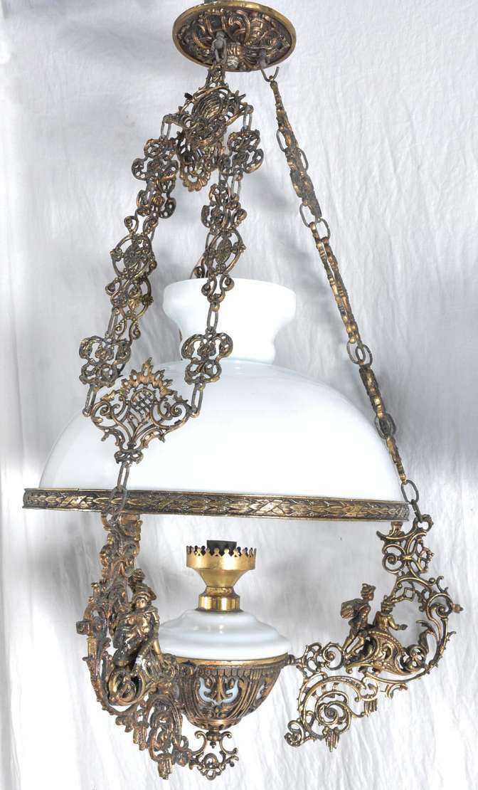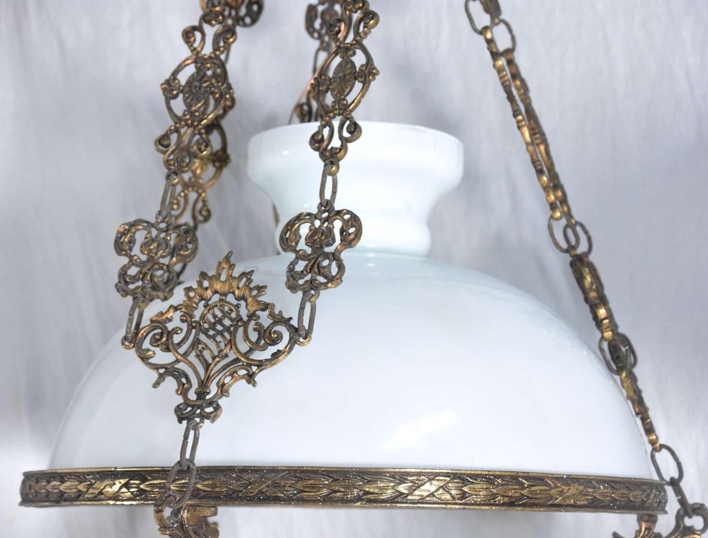 Lanterna de teto de metal com cúpula de vidro opalinado.