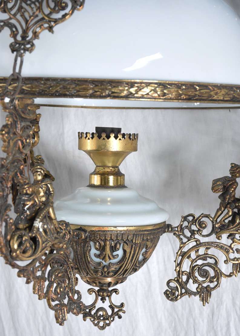 Par de abatjoures de metal dourado com cúpula opalinada.
