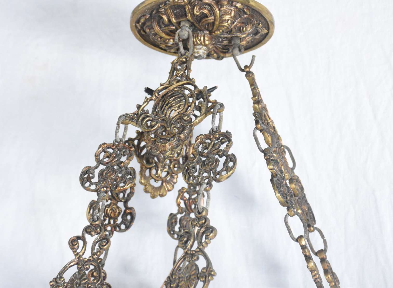 Lustre de bronze e cristal para 8 luzes, pingentes lapidados.