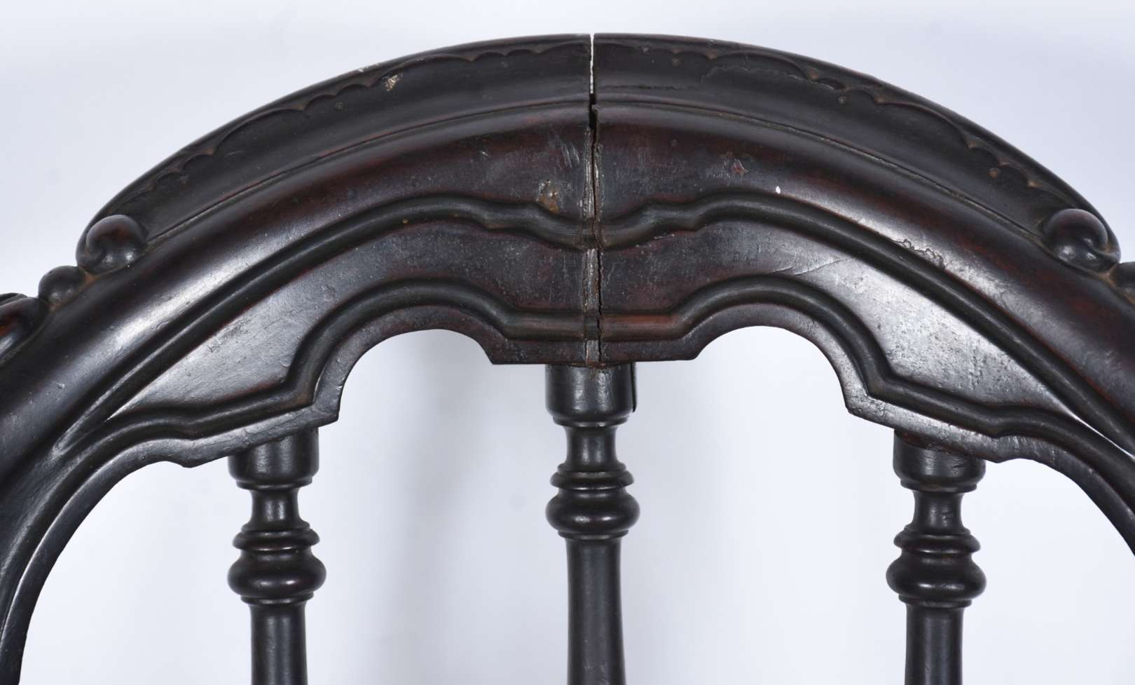 Par de savanarolas de madeira nobre, encosto com entalhes. Já teve infestação de cupim.