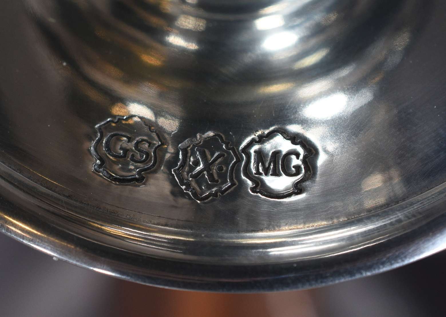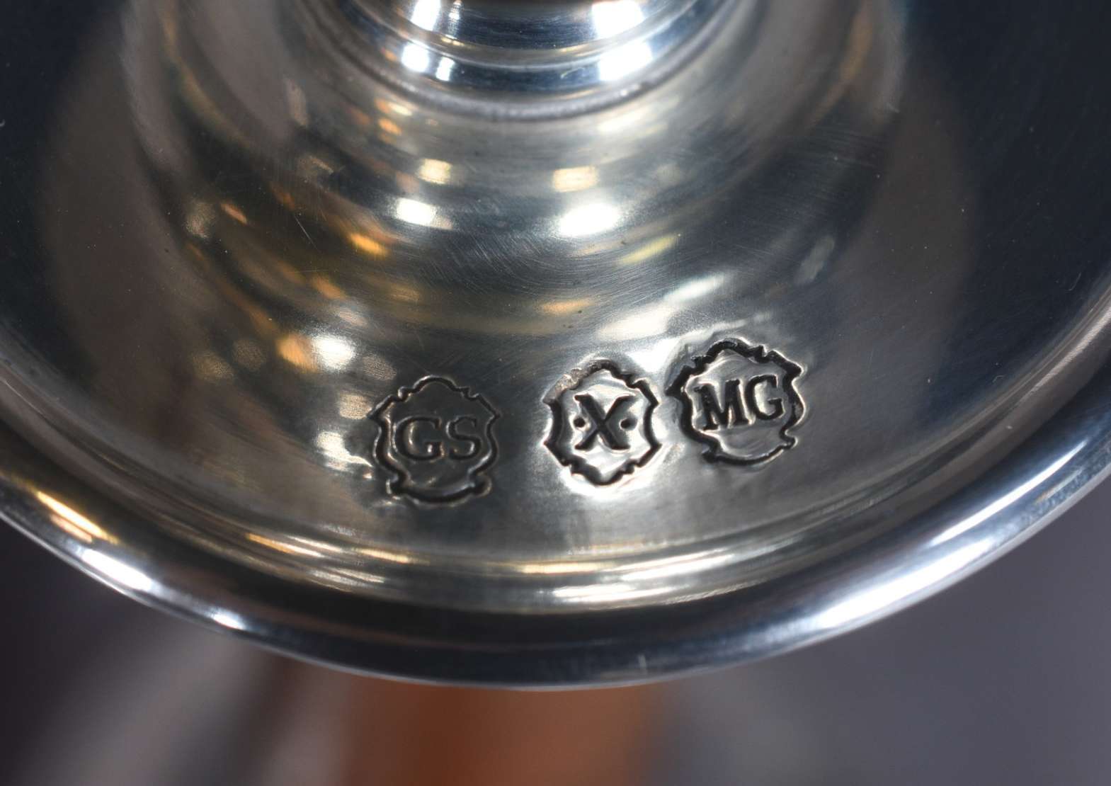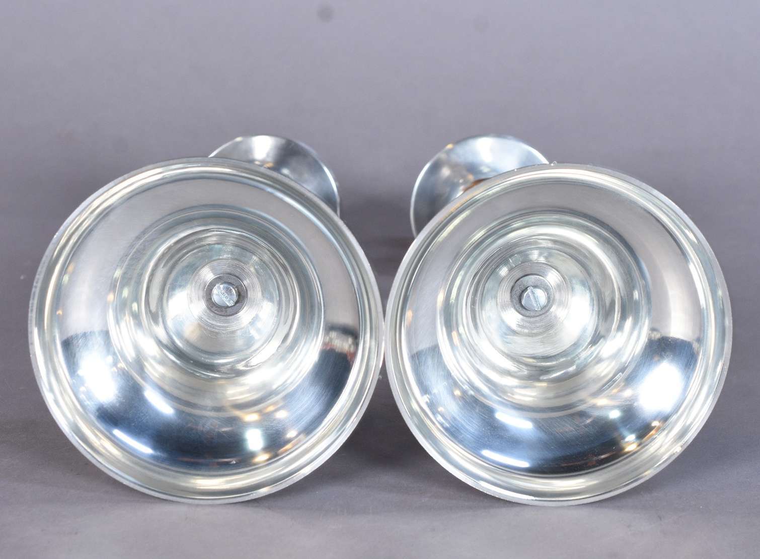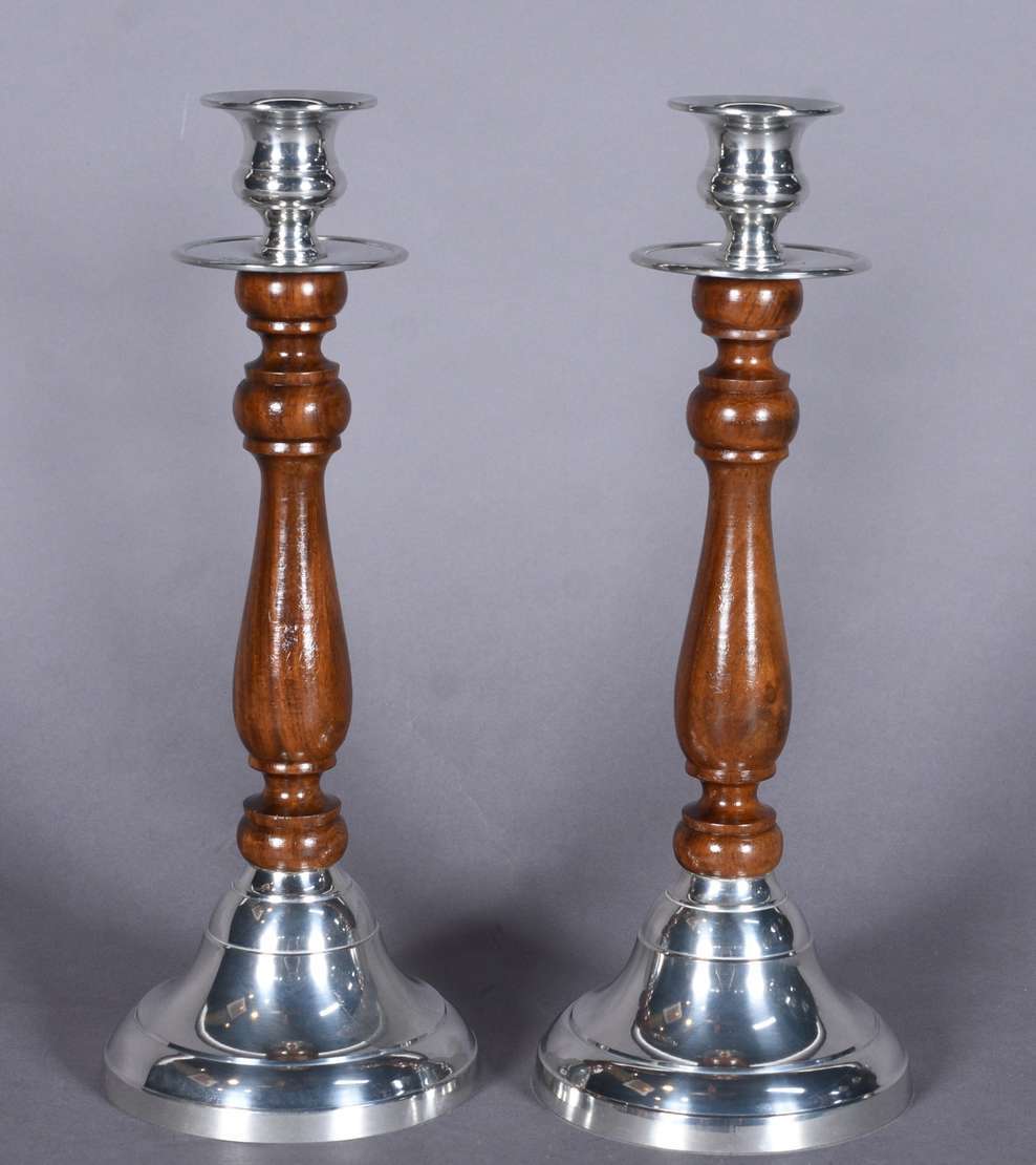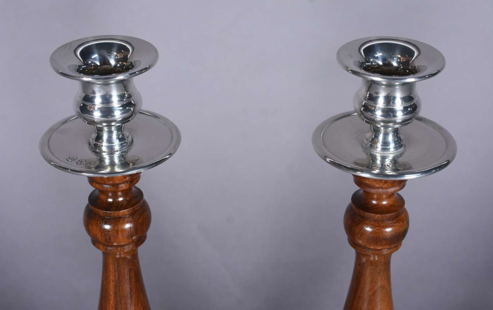 Par de castiçais de prata inglesa contraste leão passante. Peso total com enchimento: 220 g. (Por motivos de seguranç...