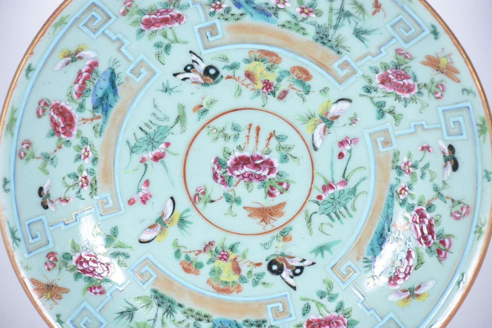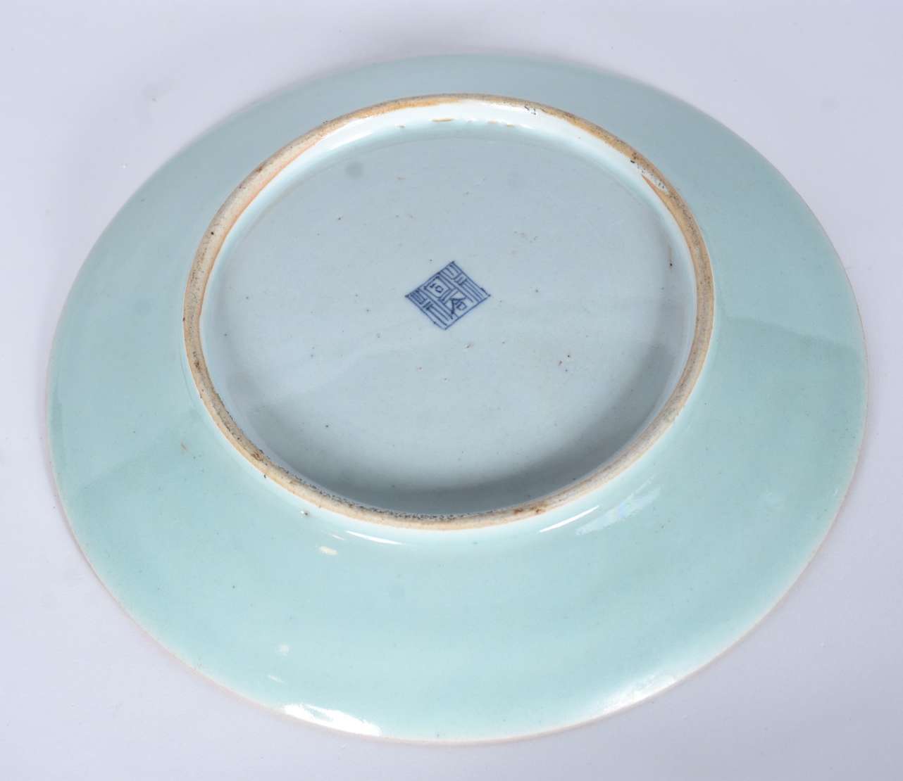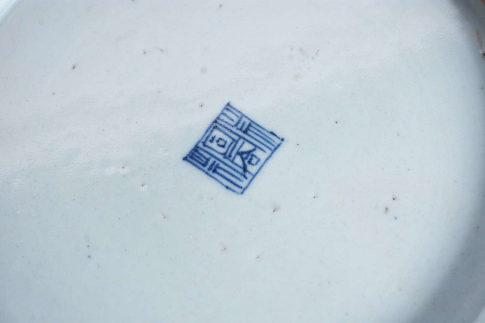 Três pratos de porcelana oriental decorações em azul e branco. Assinados na parte posterior.