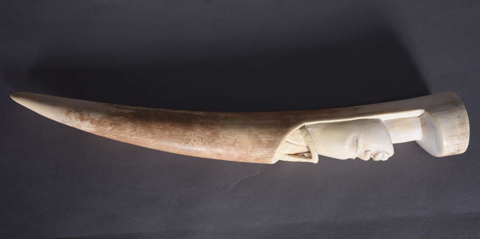 Grupo escultórico de madeira entalhada representando "manada" de elefantes.