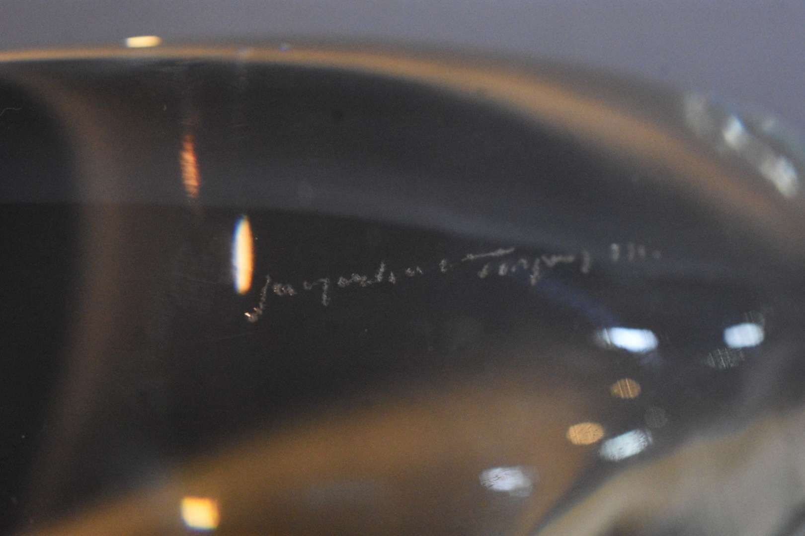 Espelho de cristal com moldura entalhada e dourada.