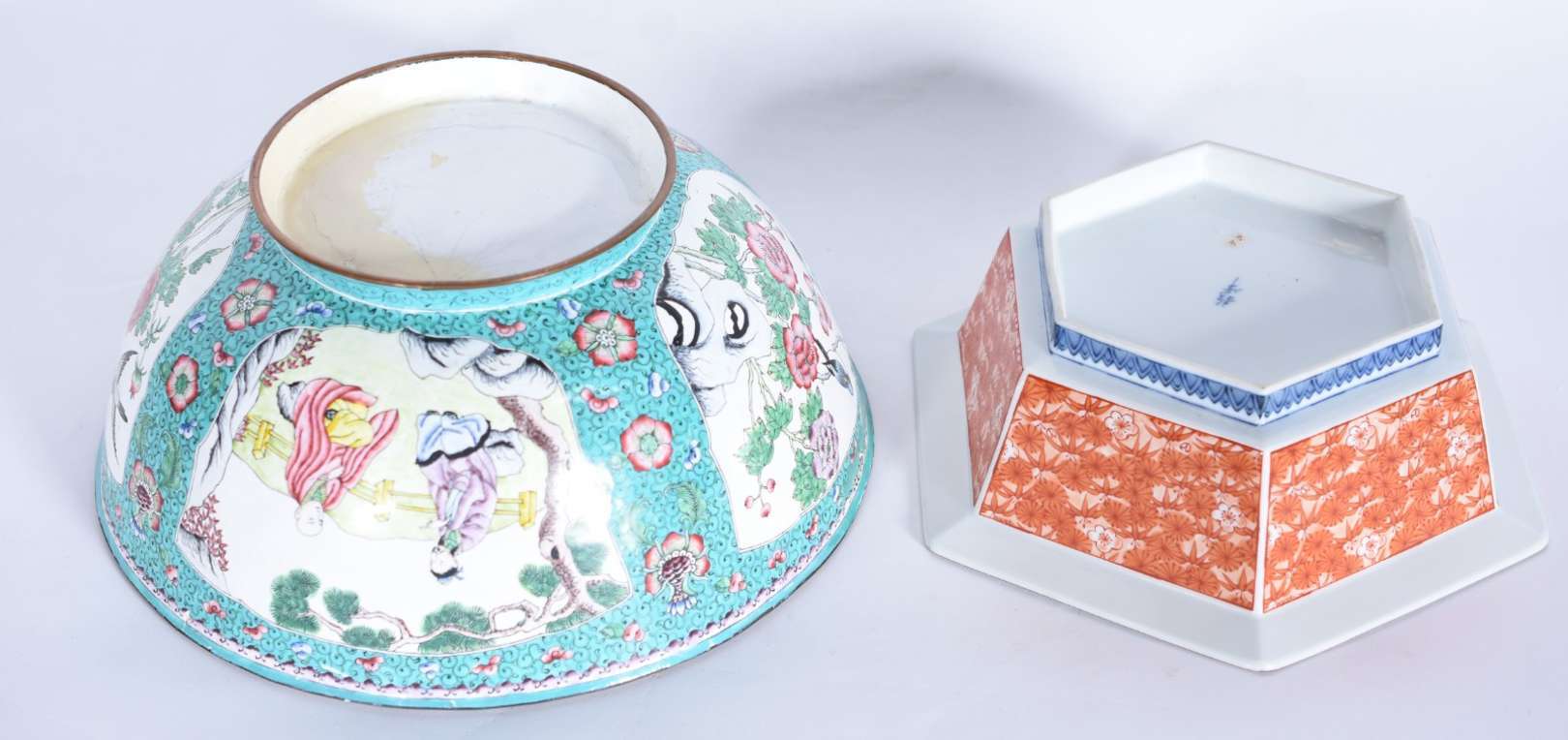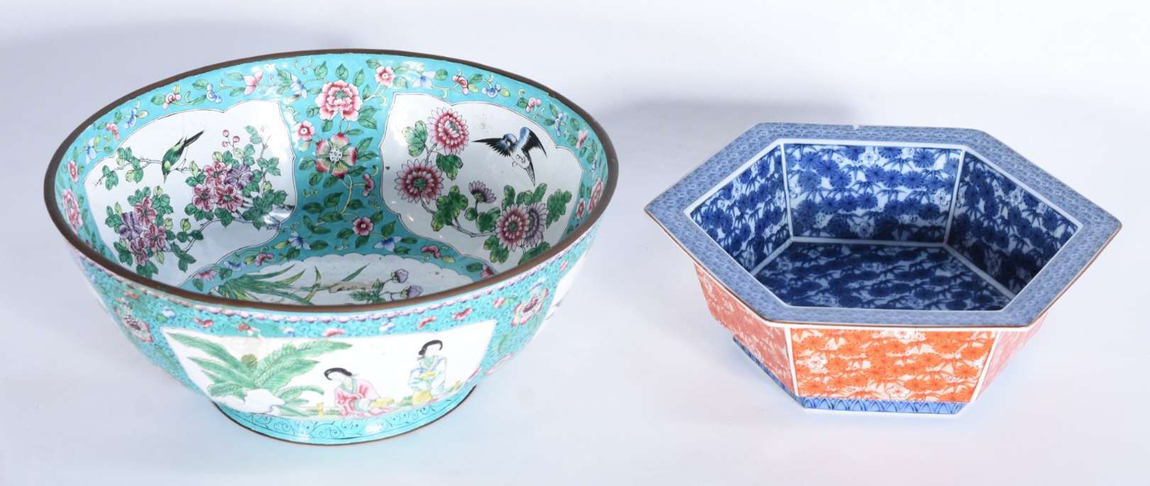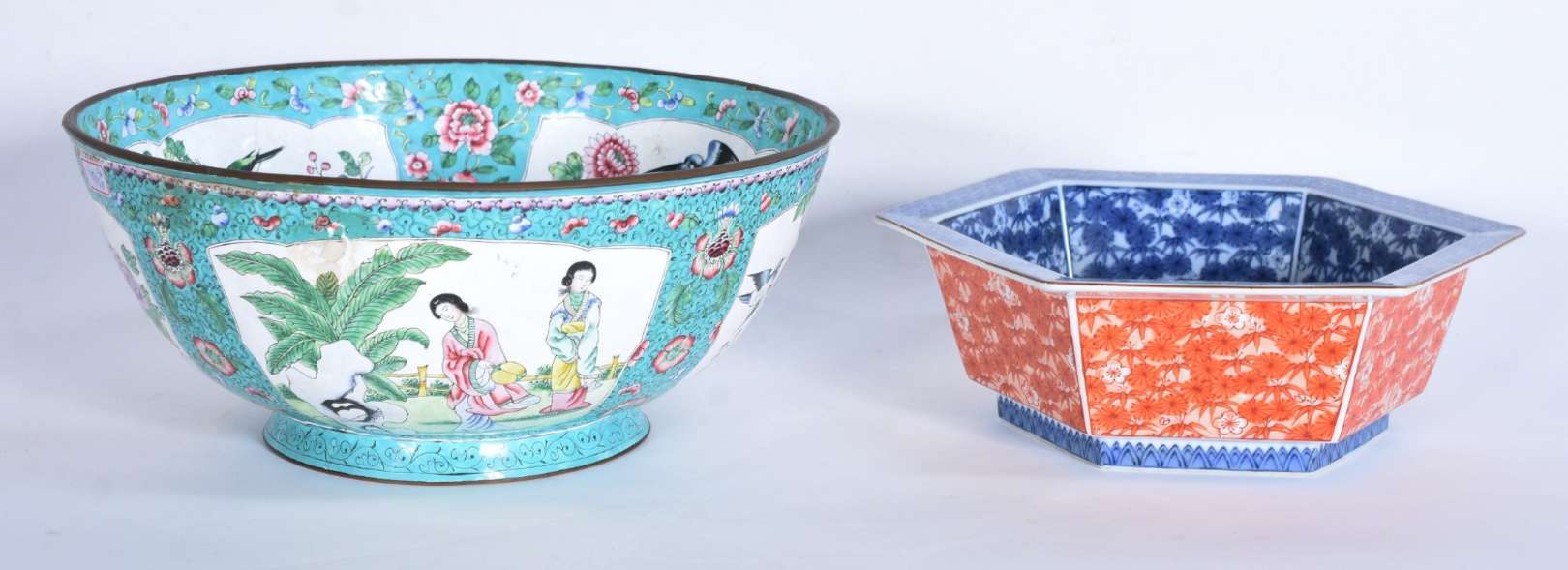 Antigo prato de porcelana oriental com esmaltes da Família Verde.