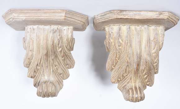 Par de peanhas de madeira nobre entalhadas e patinadas.