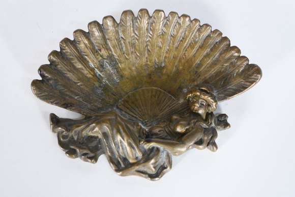 Cinzeiro de bronze Art Noveau com figura feminina.