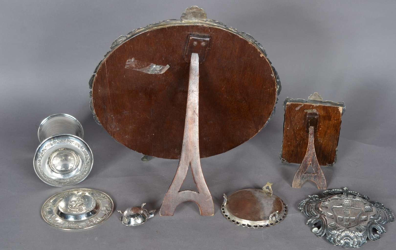 Diversas peças de metal dourado, sendo: defumador, jarra, bule, par de solifleures, caixa, cinzeiro, par de vasos e 6...