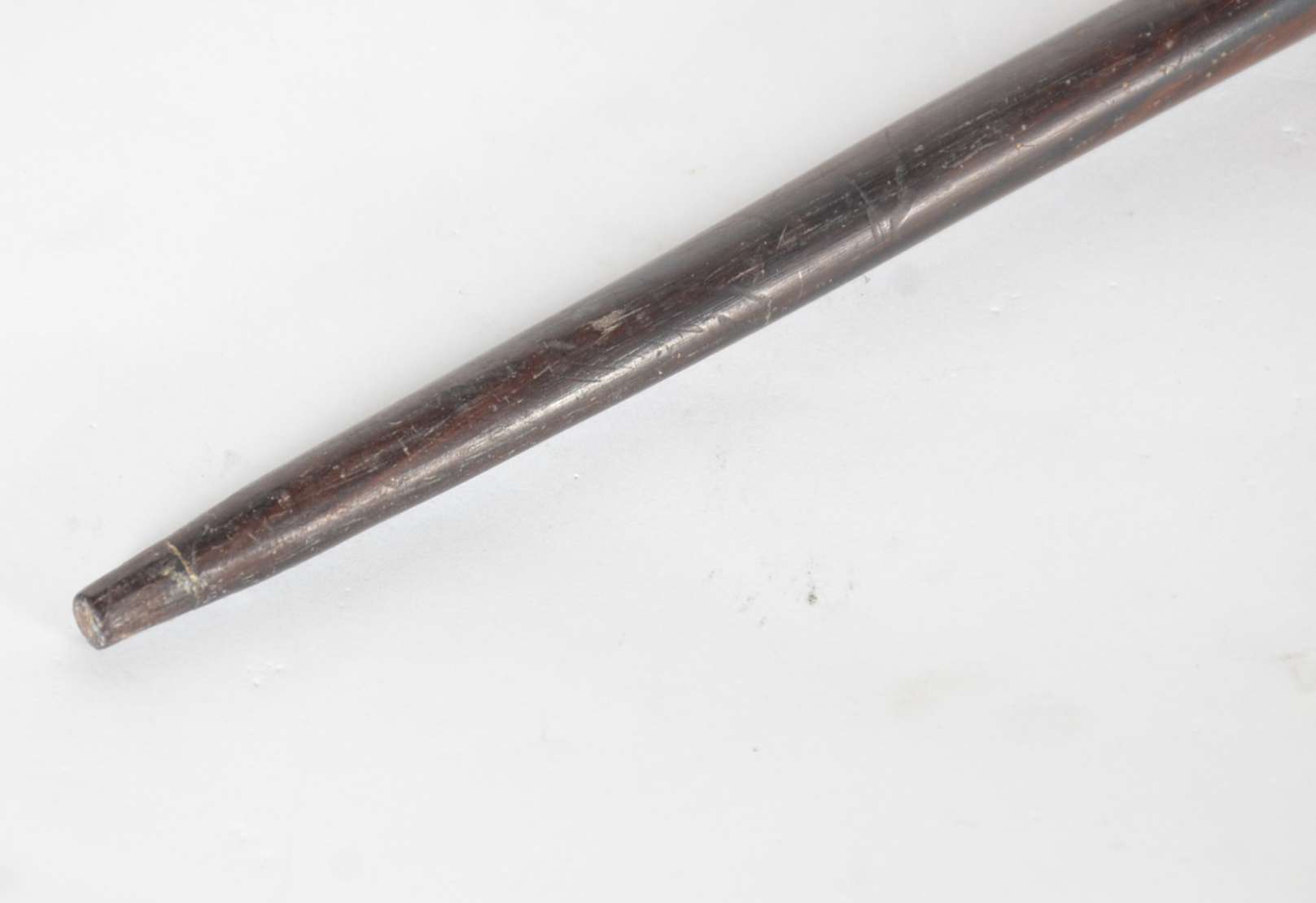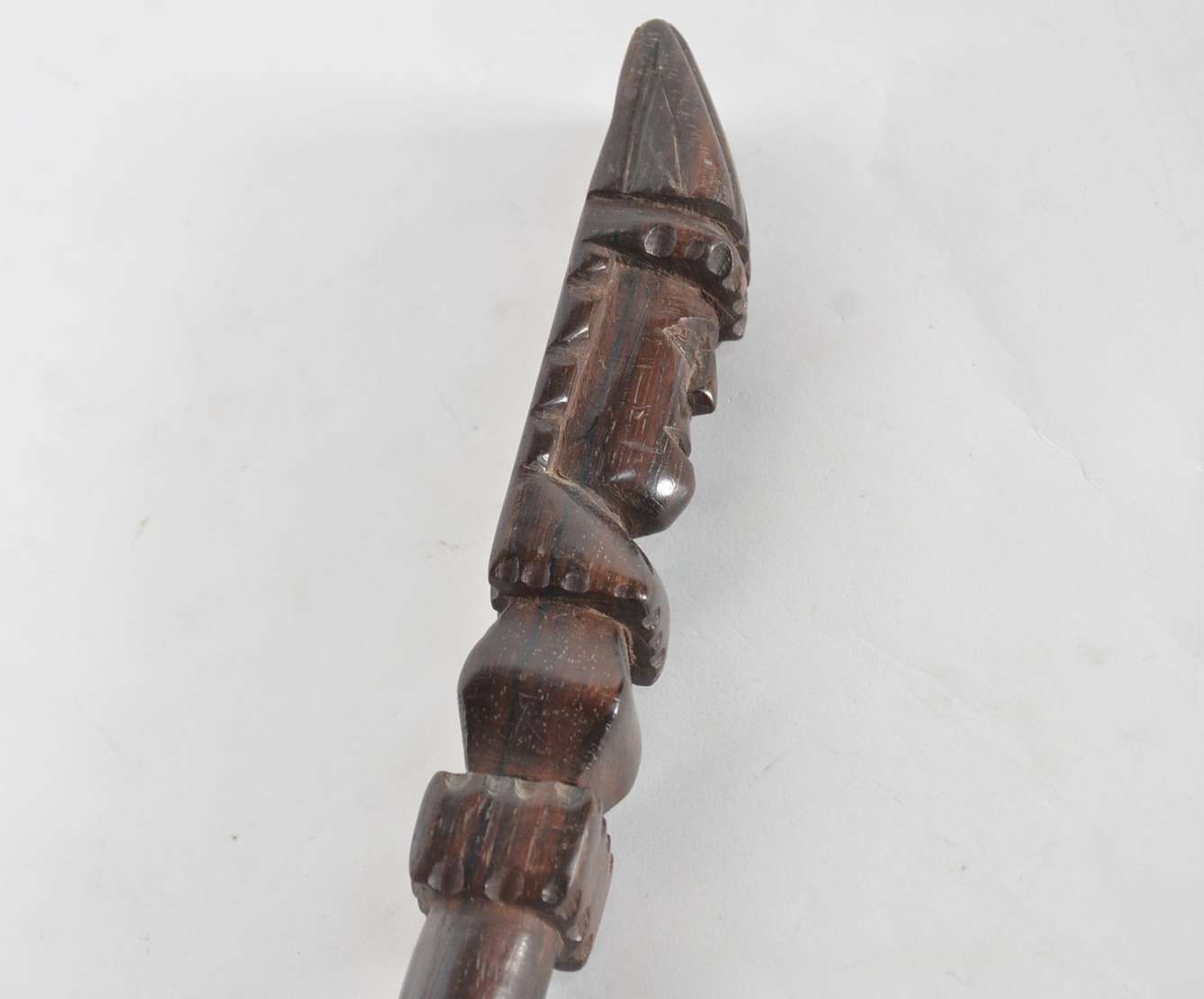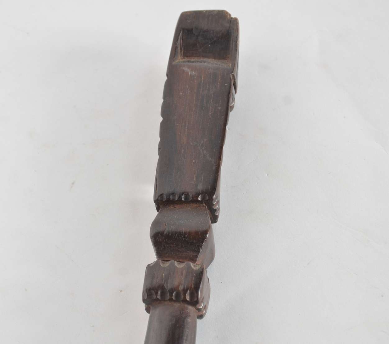 Duas bengalas de madeira nobre com castão de prata representando figuras de cavalo e elefante.