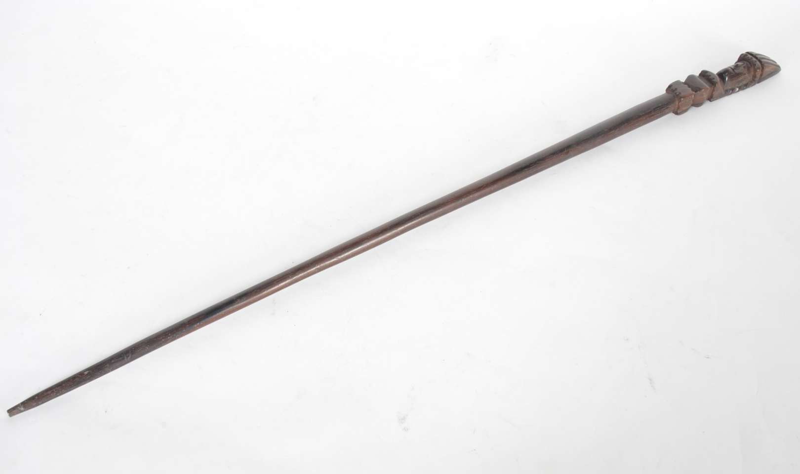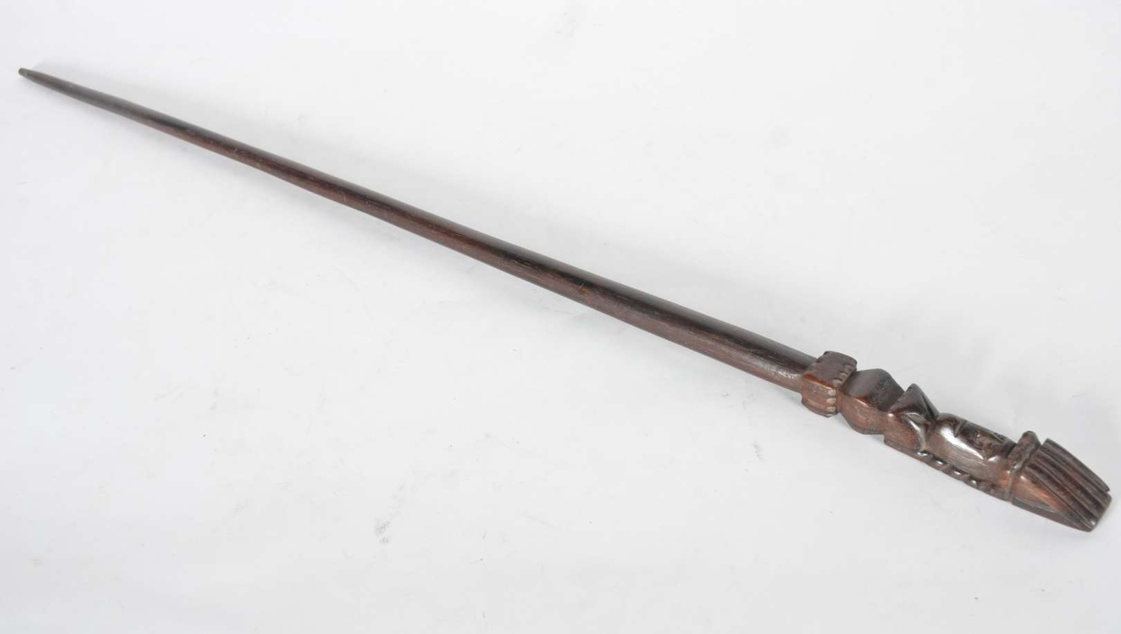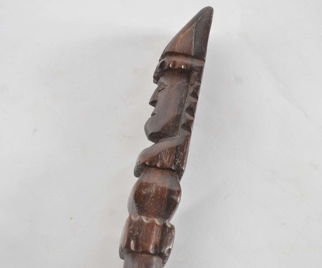 Duas bengalas de madeira nobre com castão de prata representando figuras de cavalo e elefante.
