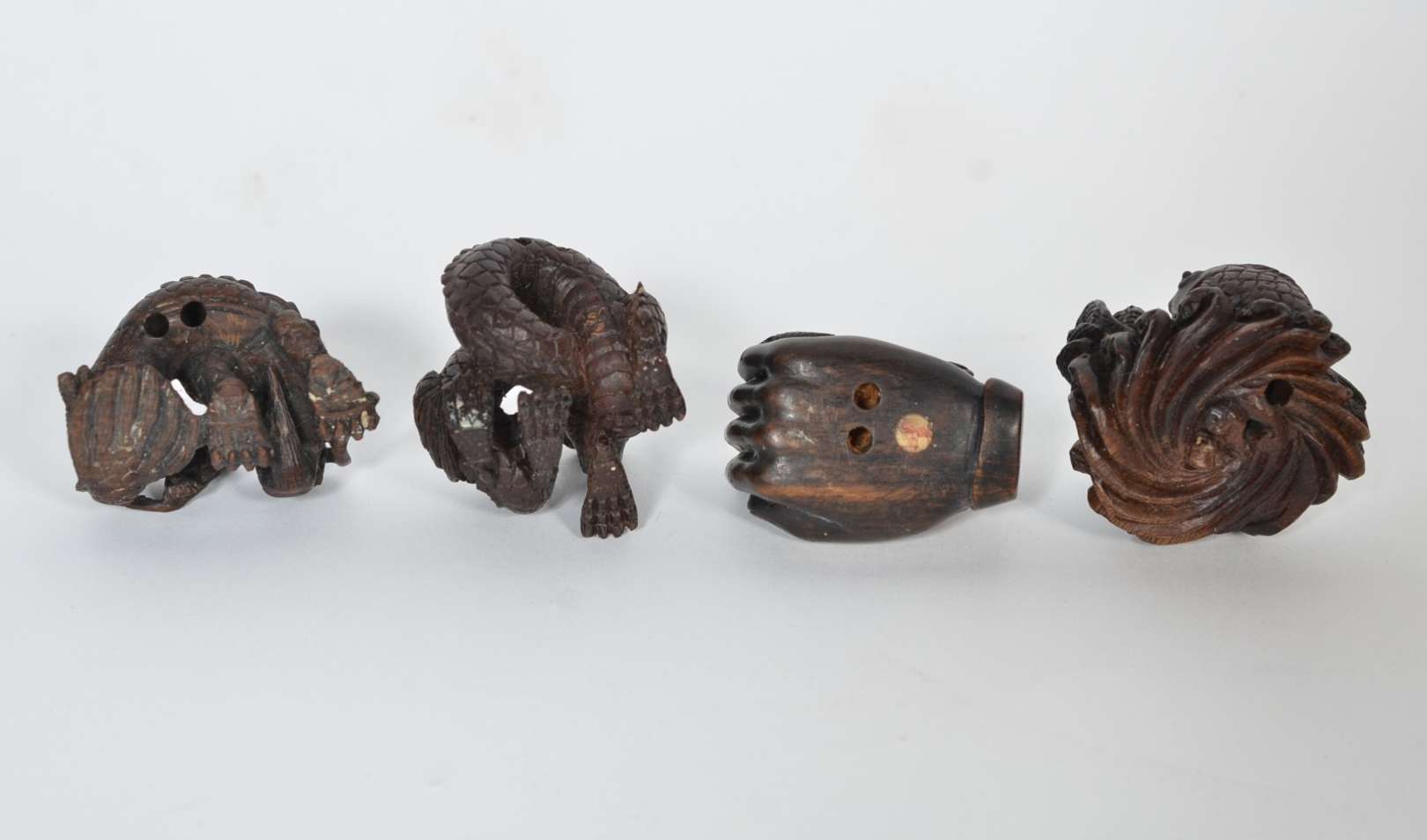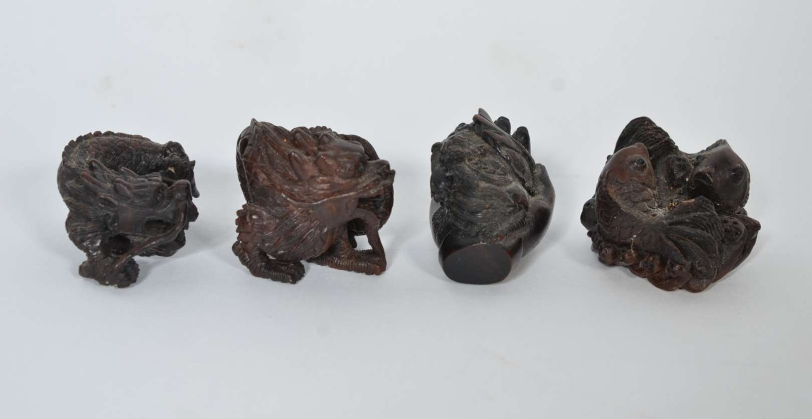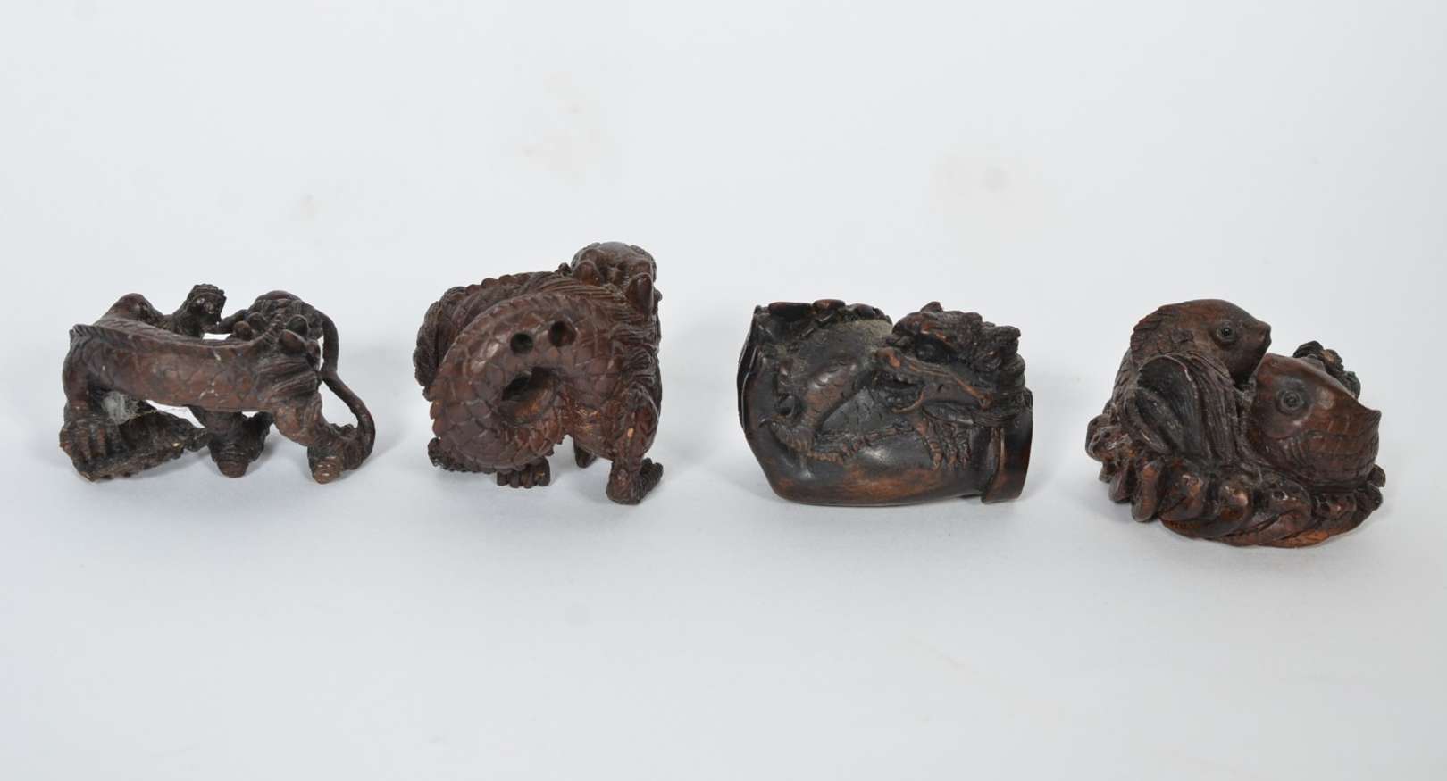 Duas bengalas de madeira nobre com castão de prata representando figuras de cavalo e elefante.