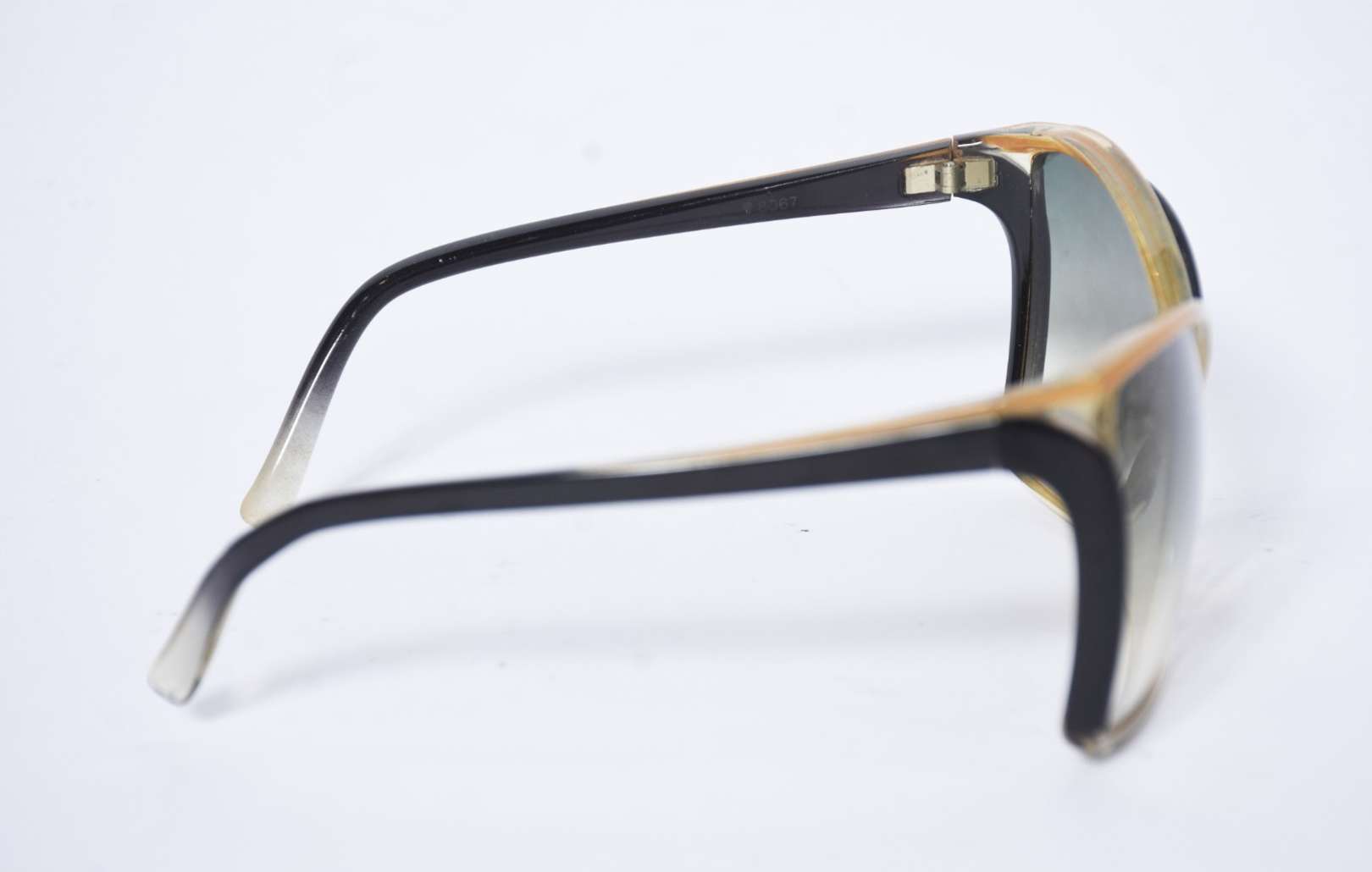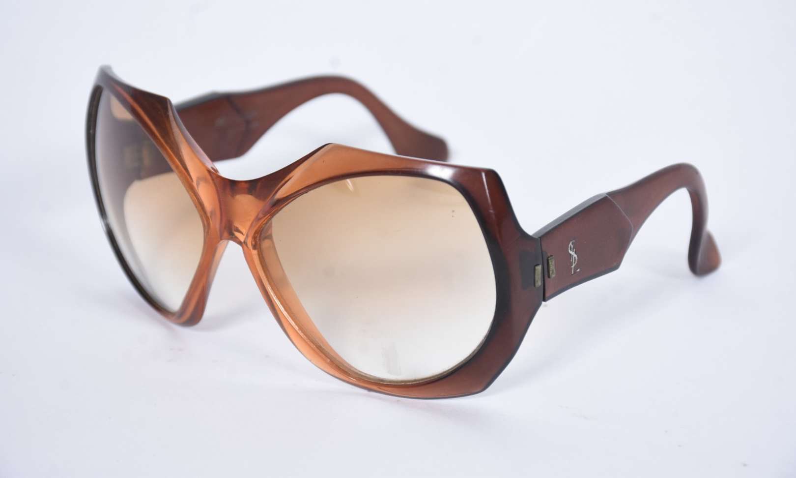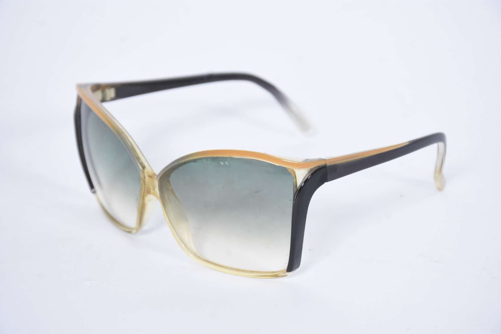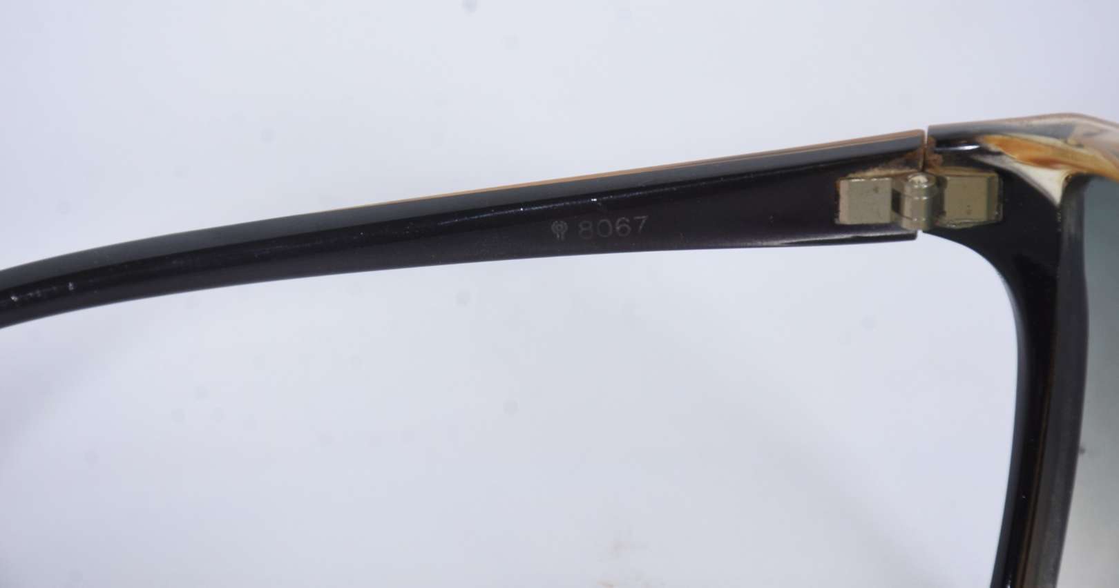 Binóculo feminino com haste articulada de bronze e esmalte decorado com flores em policromia sobre fundo verde.