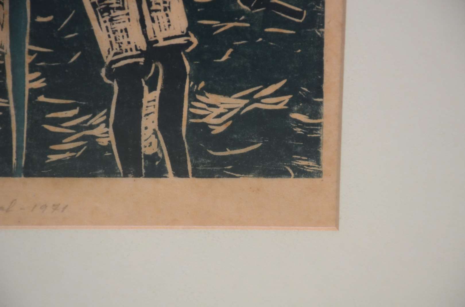 Xilogravura sobre papel de arroz - Tiragem póstuma especial por Reis Junior - 9/10 - datada 1973. Assinada por Beatri...