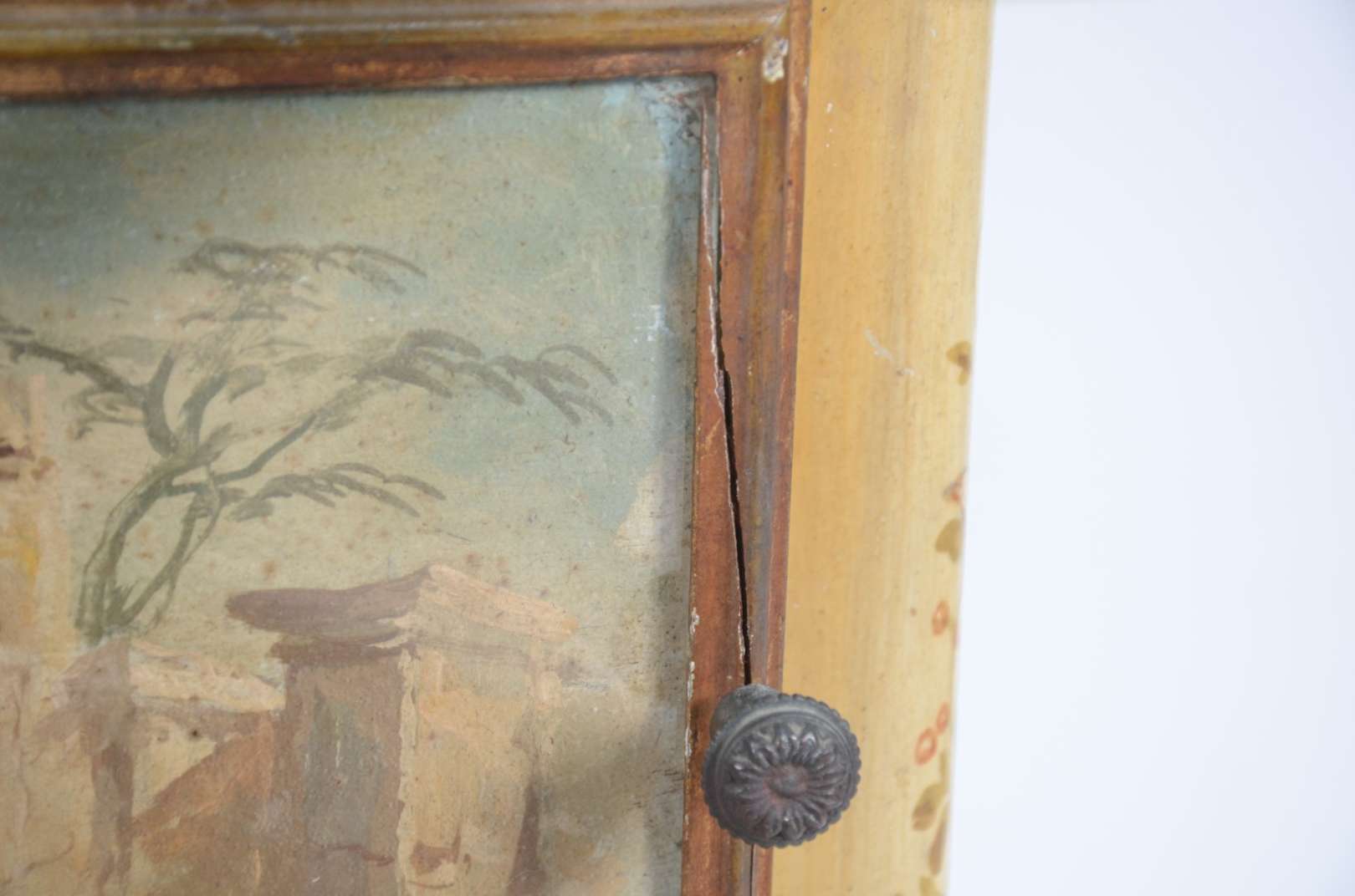 Dunquerque de madeira nobre com duas portas espelhadas e uma gaveta. Prateleiras internas. Desgastes nos fechos inter...