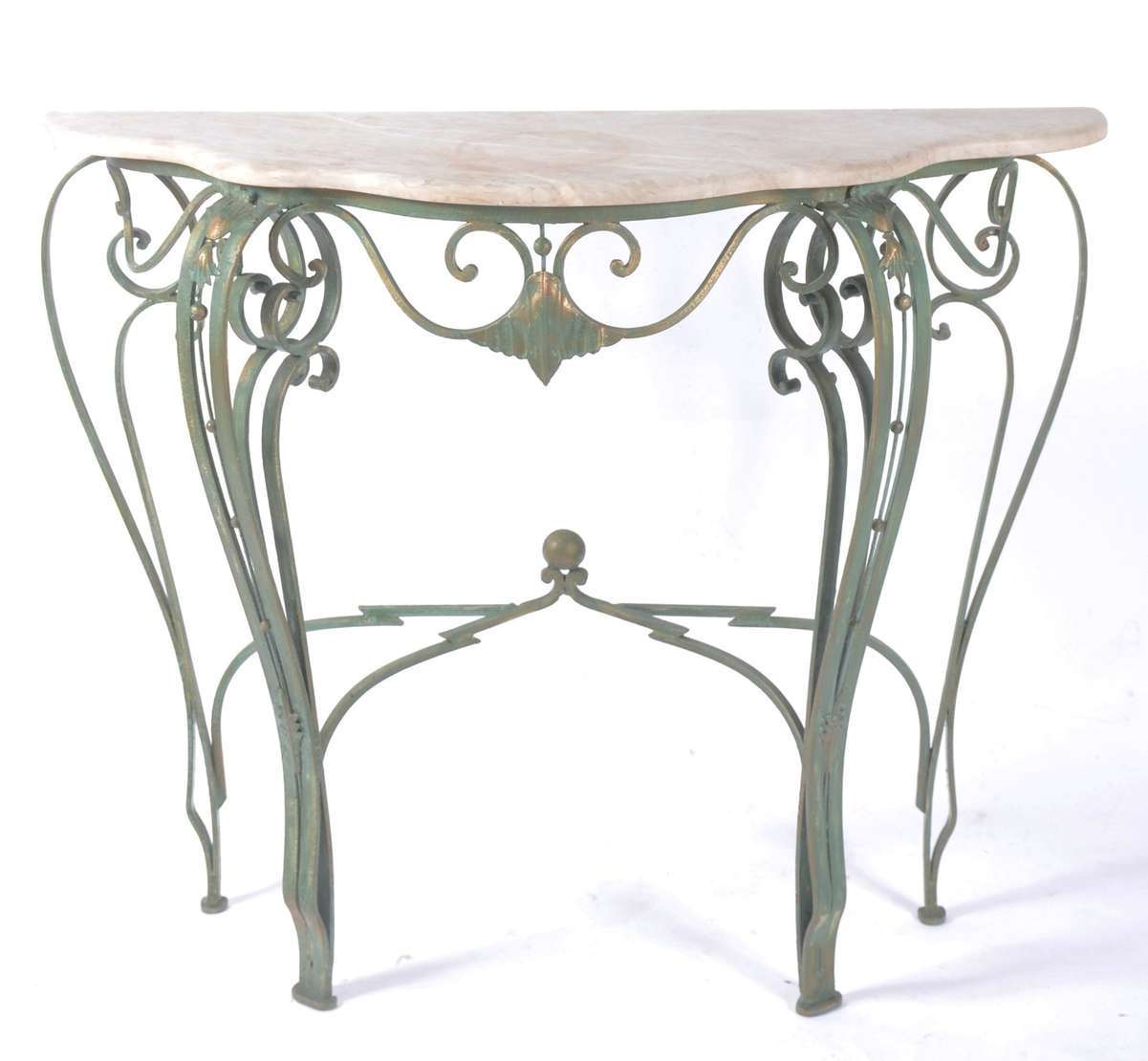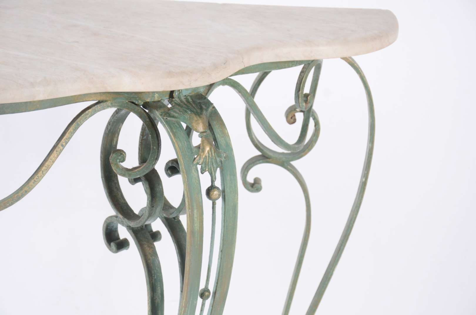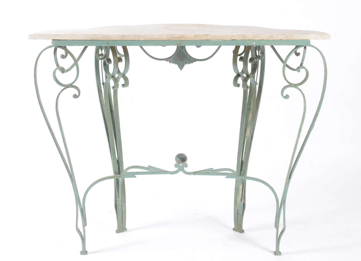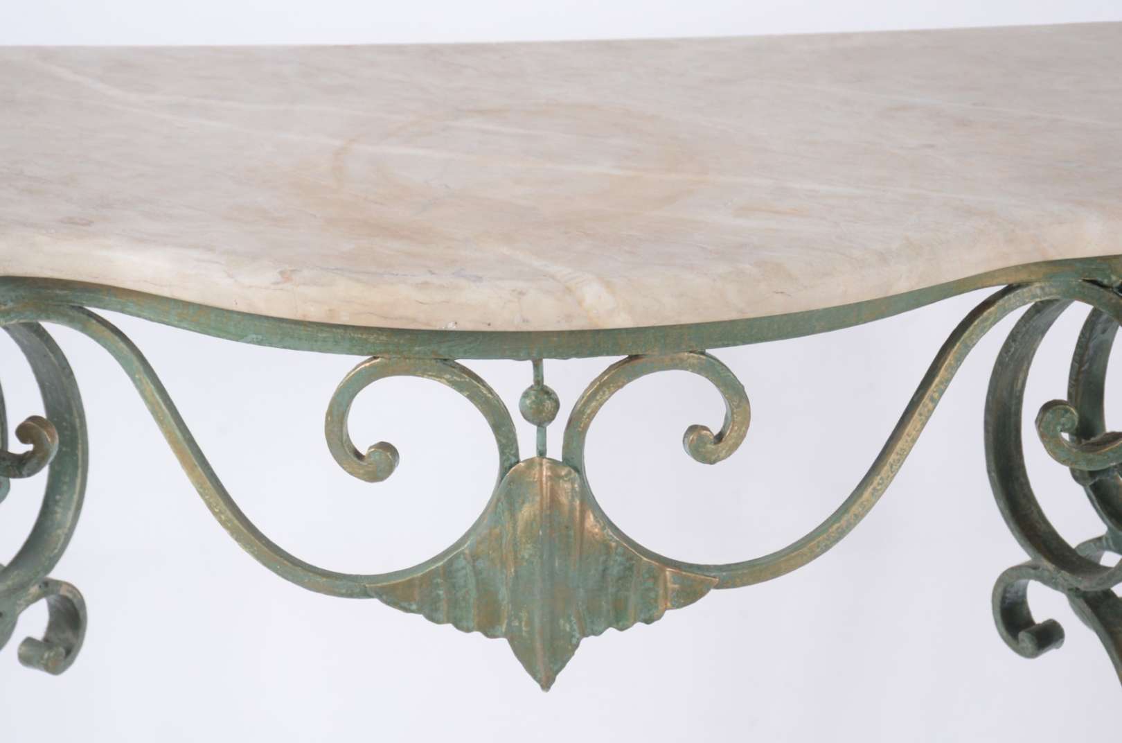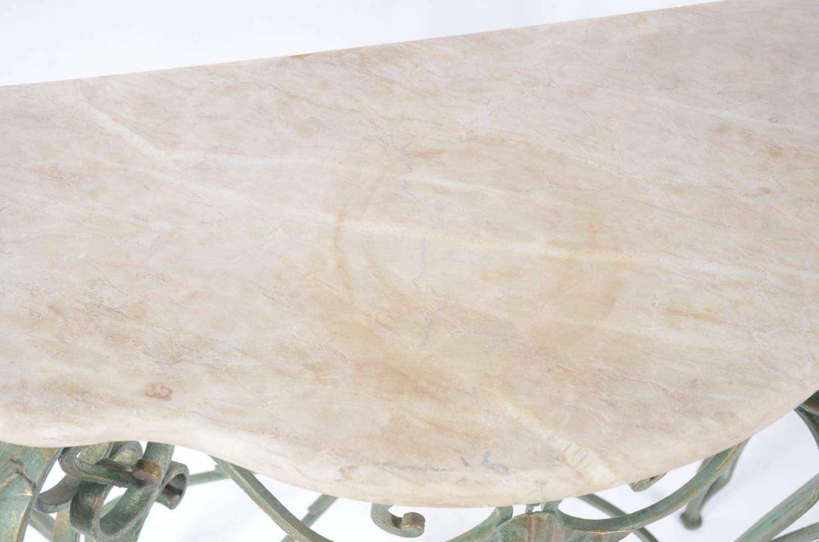 Aparador de madeira nobre, pernas frontais recortadas apoiada em platô inferior, tampo de mármore rajado.
